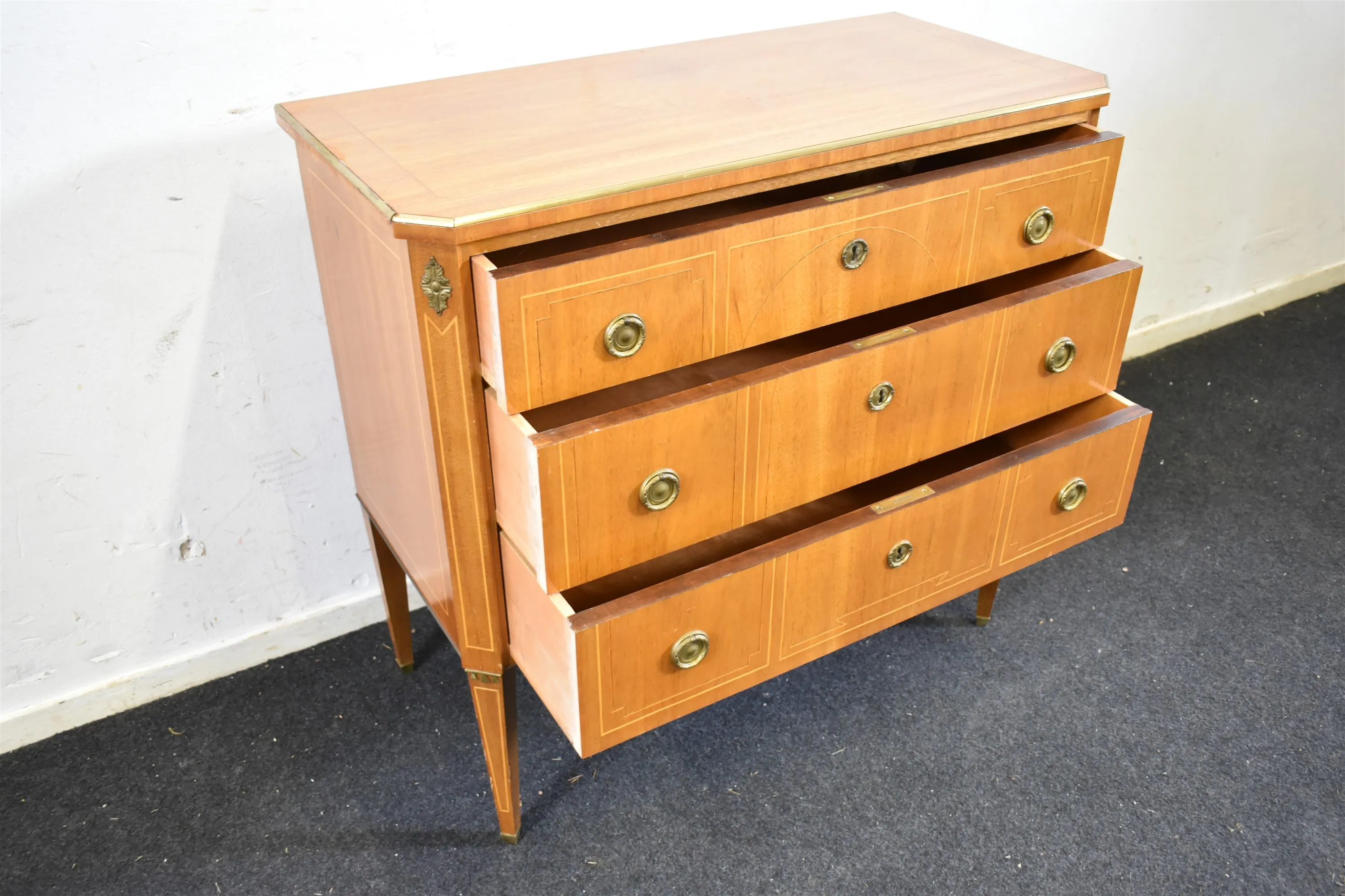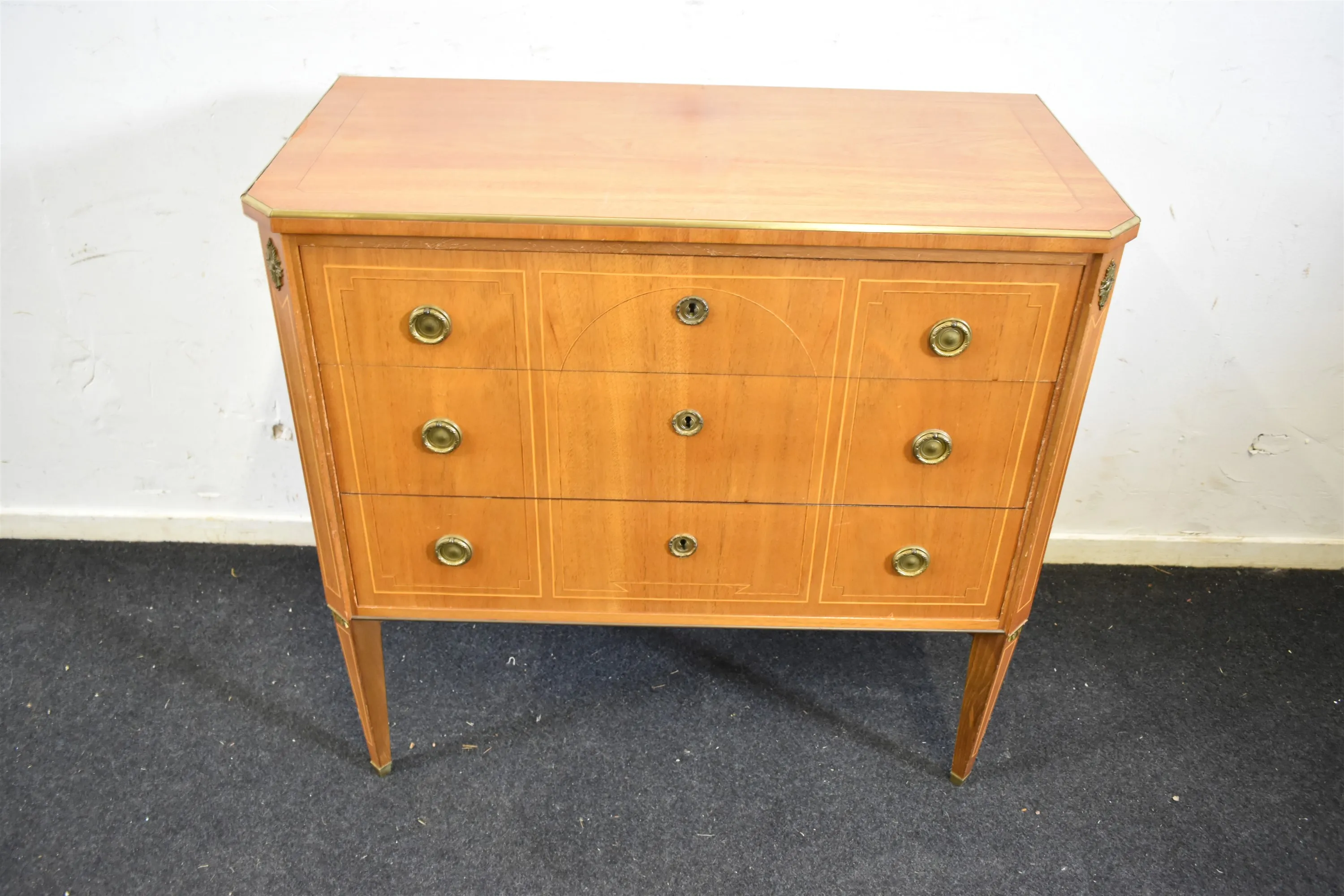 12532. Byrå, mahogny metallkant, höjd 76 cm, bredd 80 cm, djup 39 cm