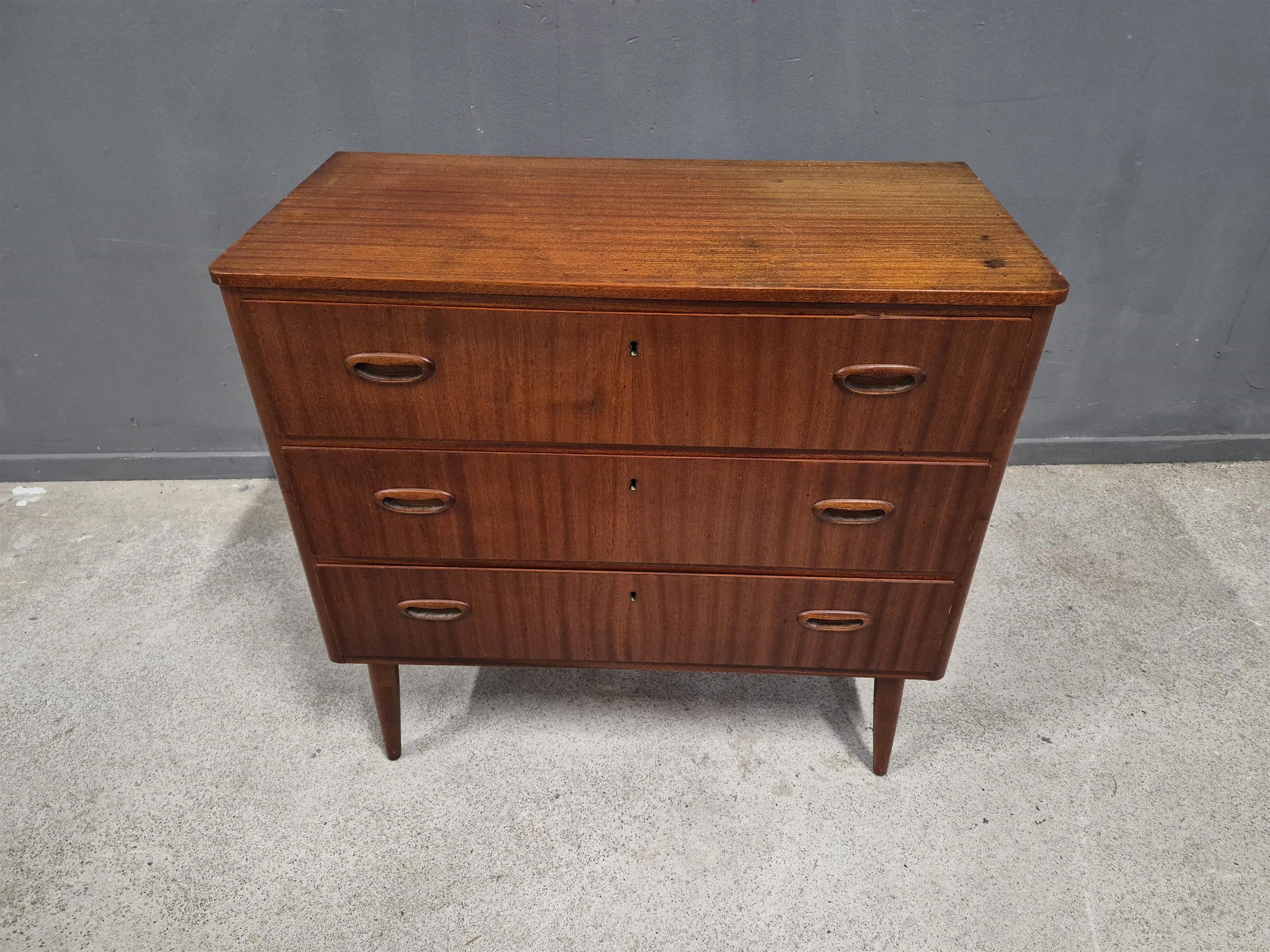 19053. Byrå, mahogny, retro, någon fläck finns höjd 70 cm, bredd 75 cm, djup 38 cm