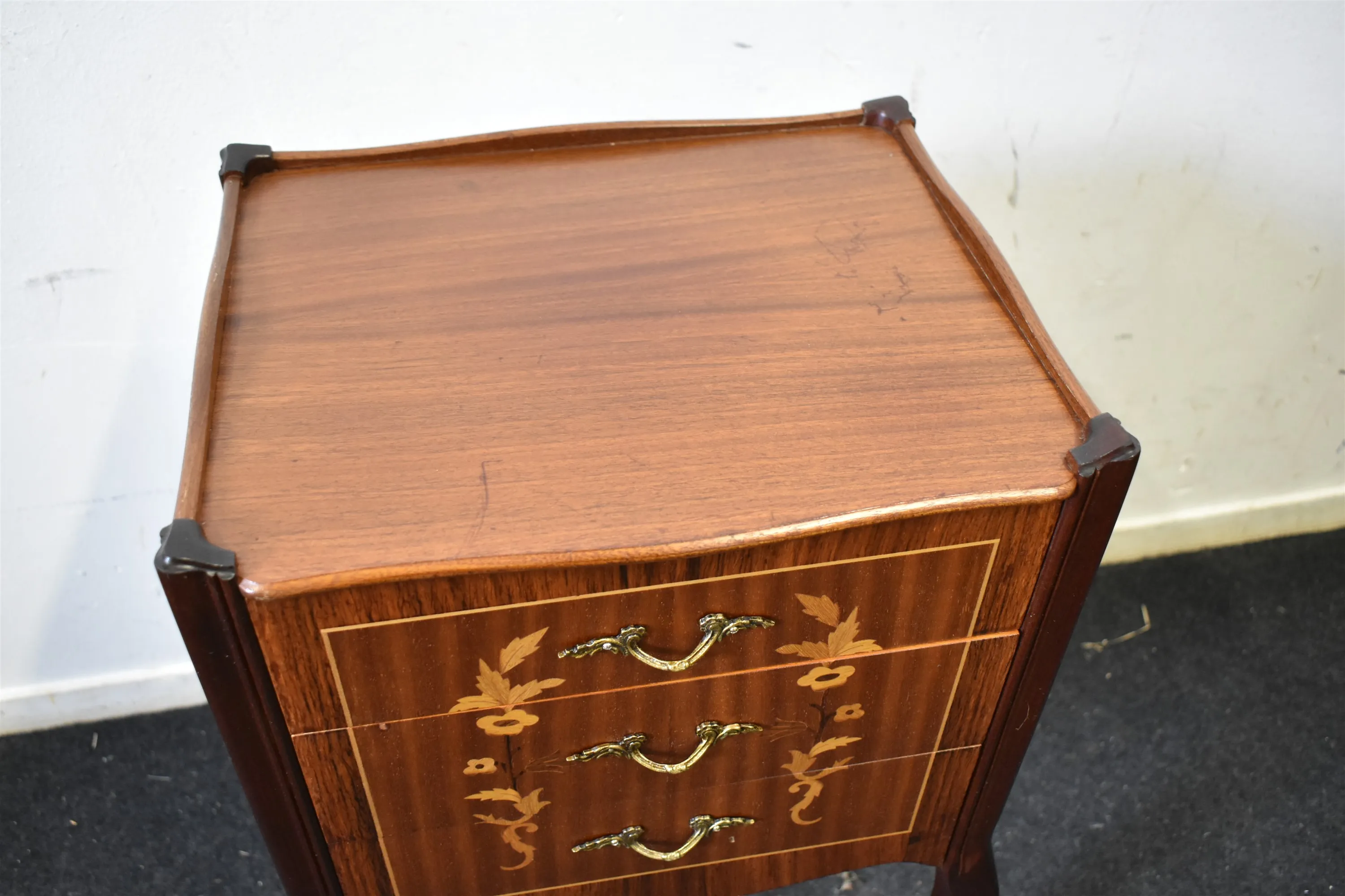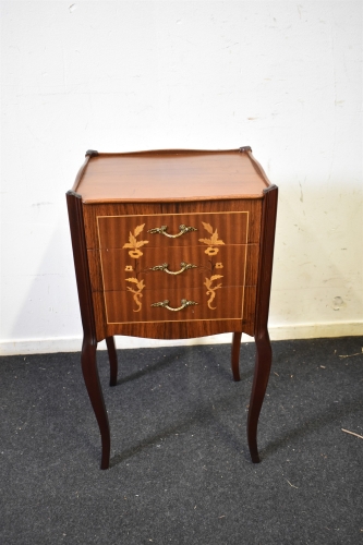 11205. Byrå med 3 lådor, intarsia, höjd 62 cm, bredd 25 x 32 cm