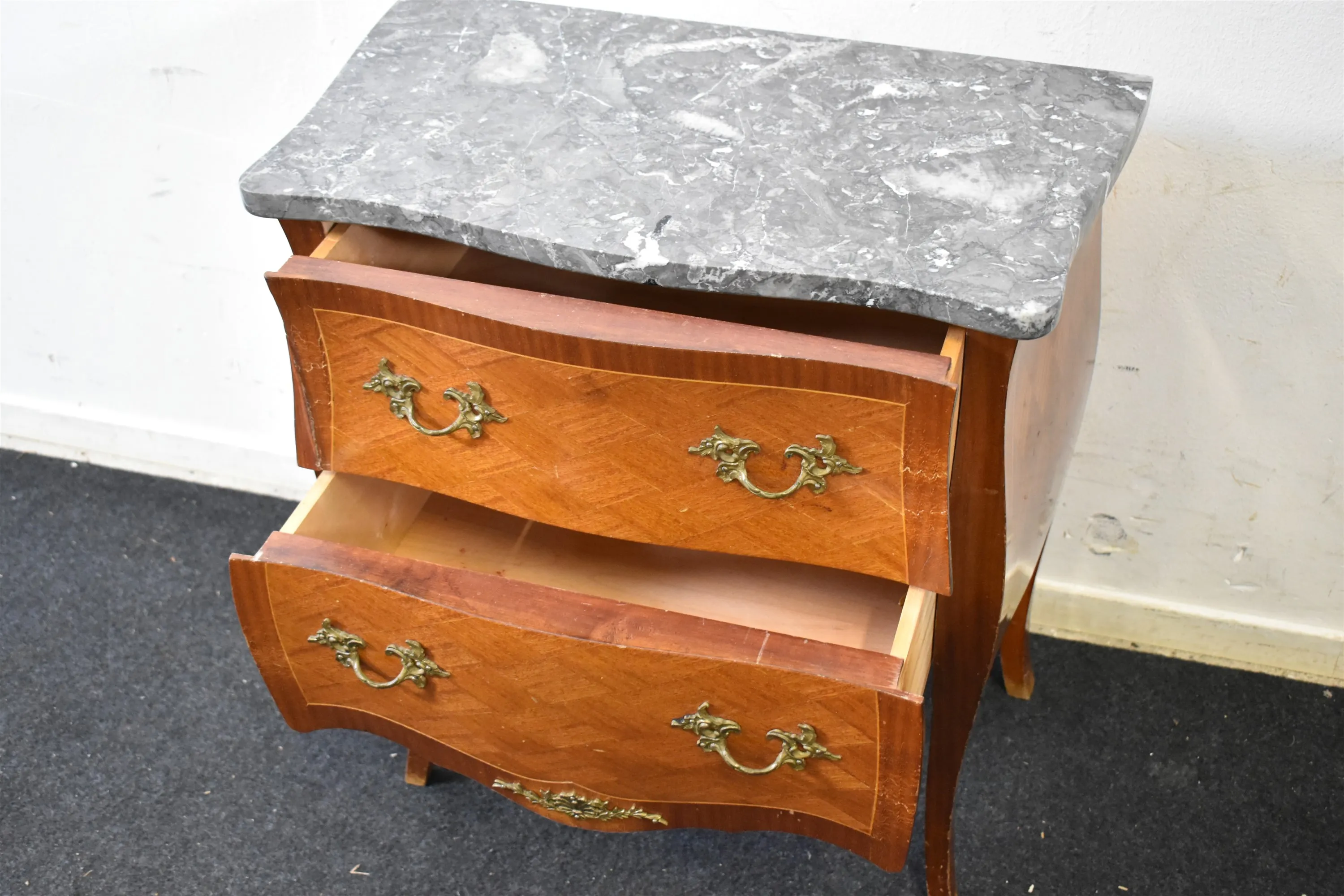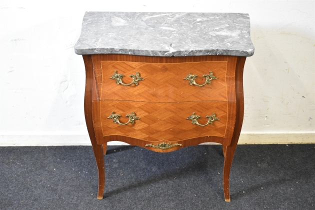 13754. Byrå med marmorskiva, höjd 66 cm, längd 59 cm, bredd 31,5 cm