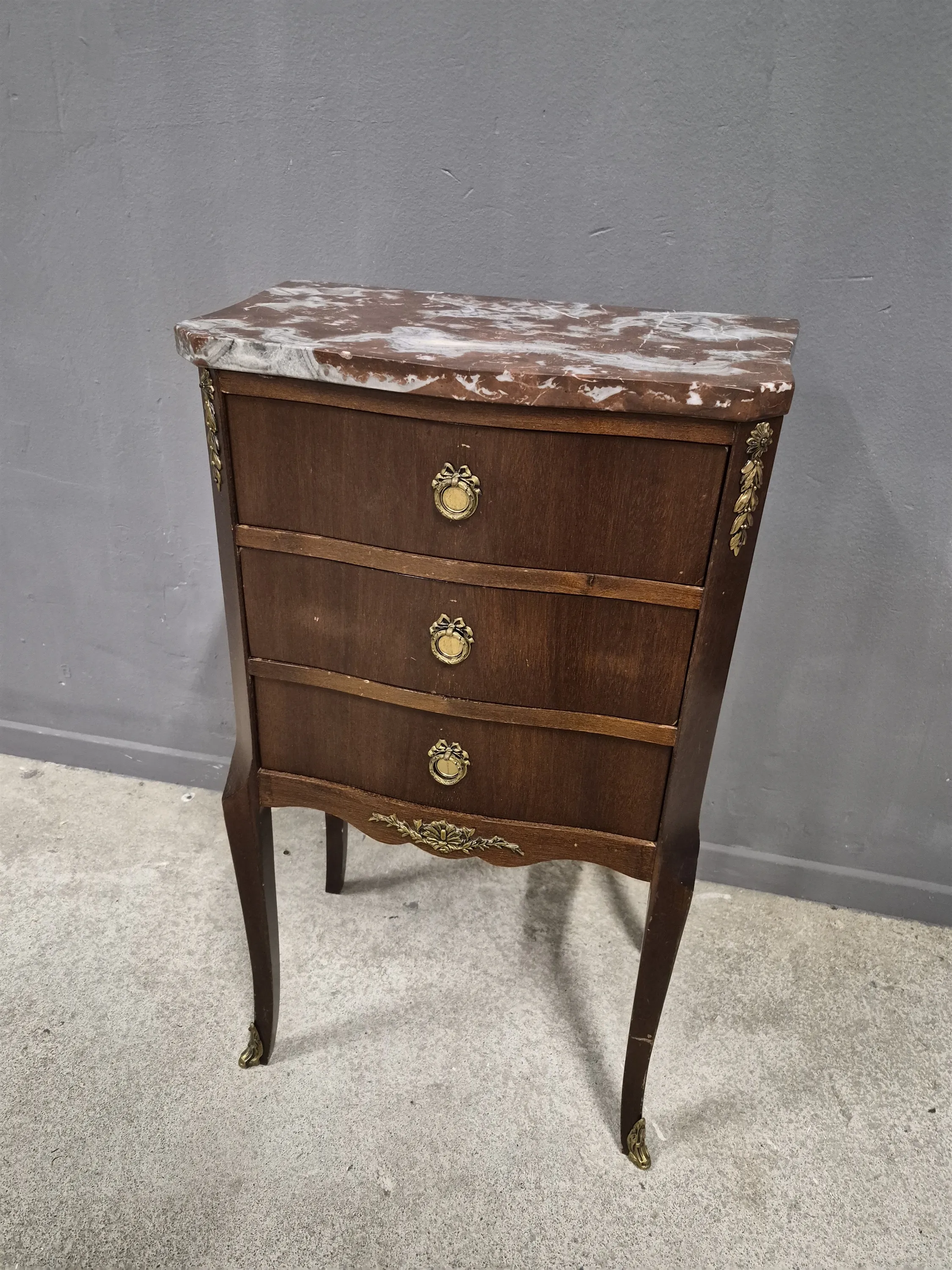 17310. Byrå med marmorskiva, höjd 73 cm, längd 44 cm, bredd 27 cm