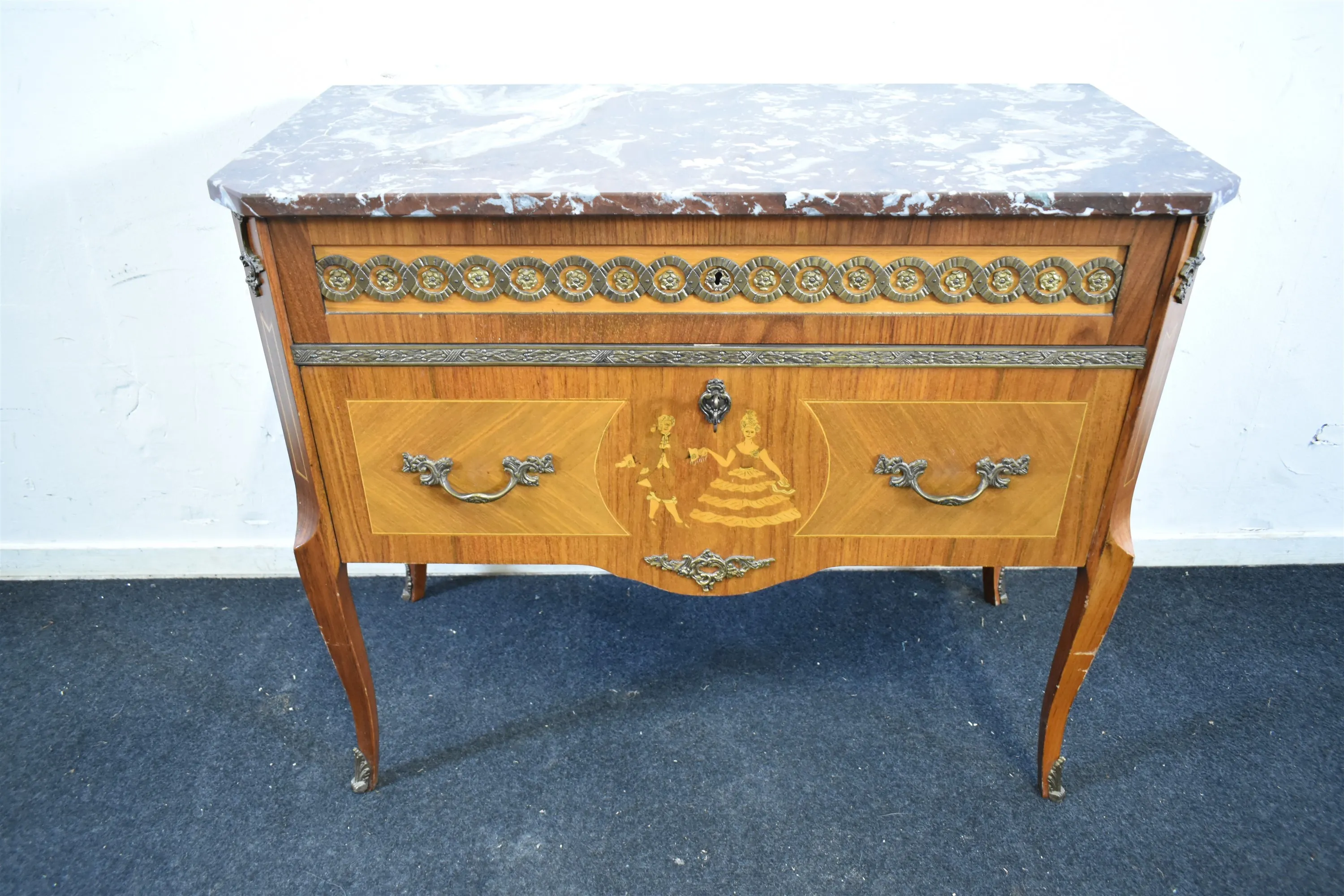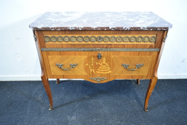 13274. Byrå med marmorskiva, höjd 73 cm, längd 87 cm, bredd 42 cm