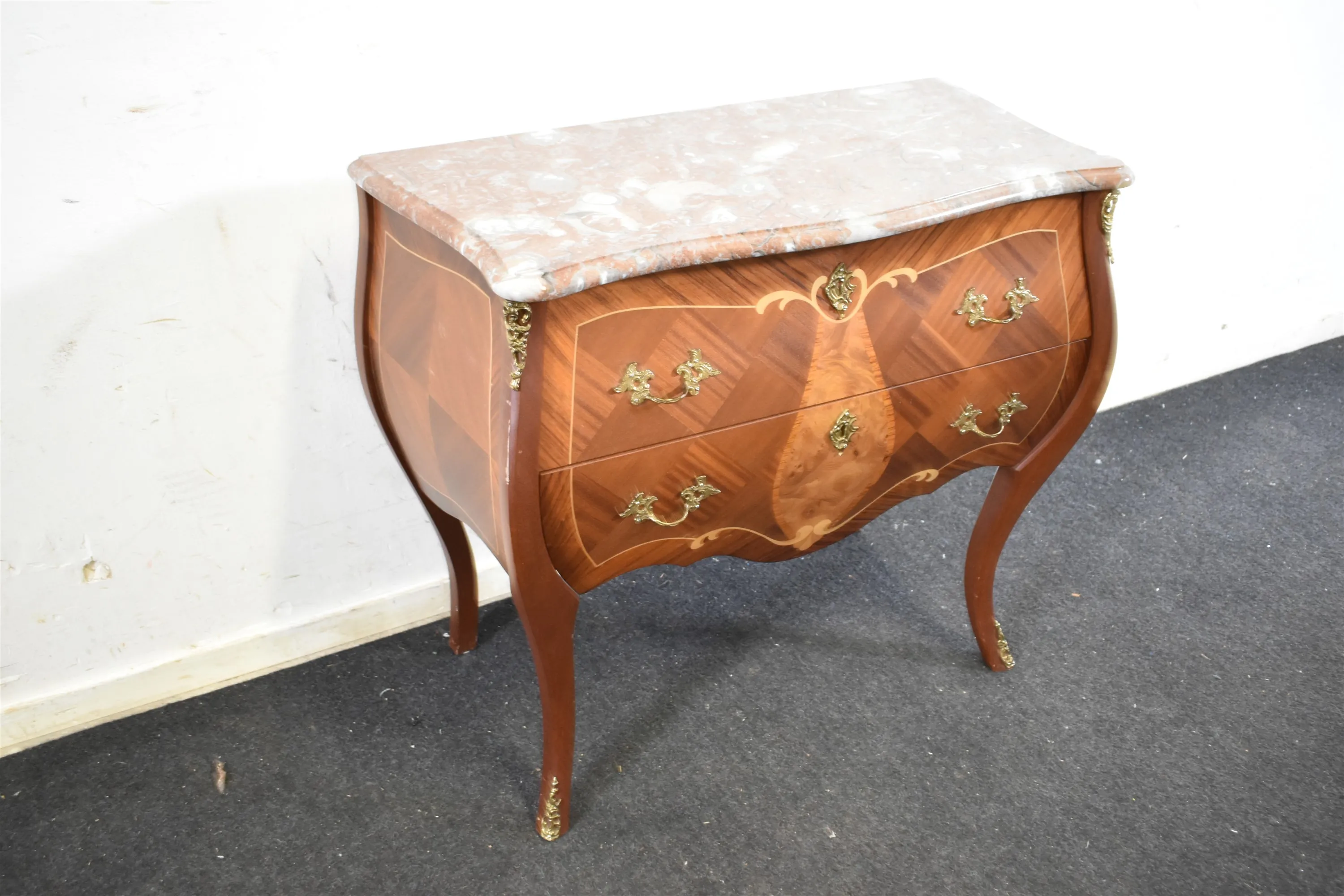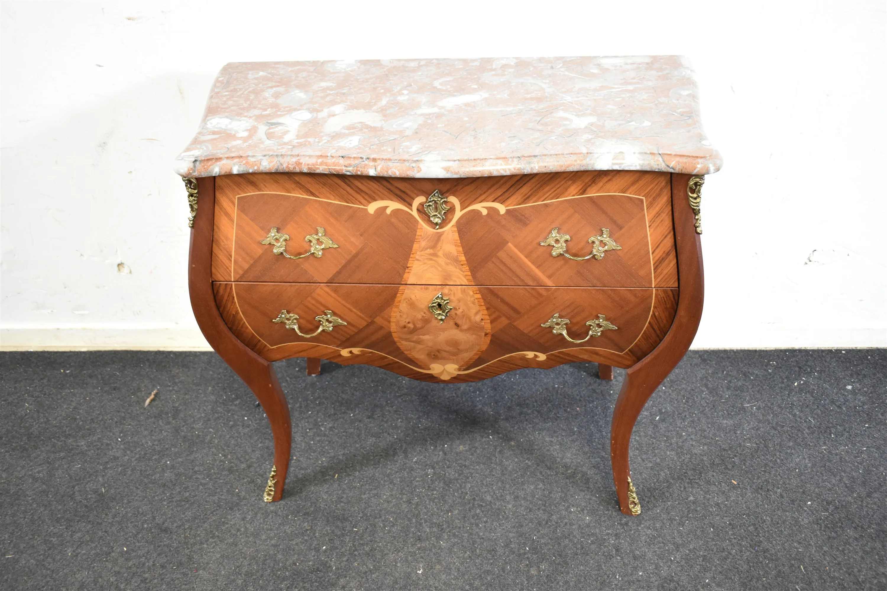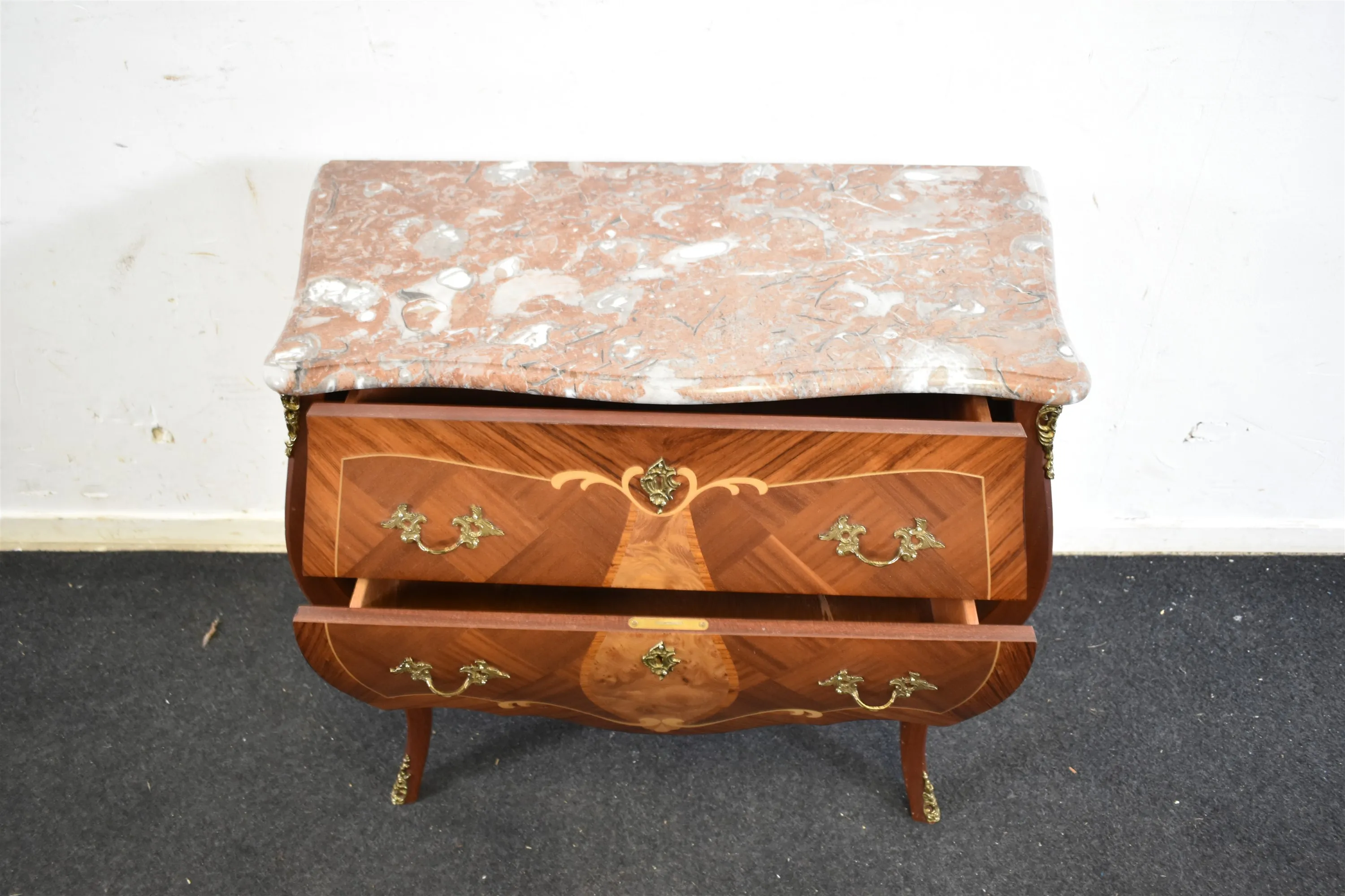 15268. Byrå med marmorskiva, rokokostil, höjd 69 cm, bredd 70 cm, djup 38 cm