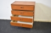 1457. Byrå teak 4 lådor, höjd 73 cm, bredd 60 cm, djup 32 cm