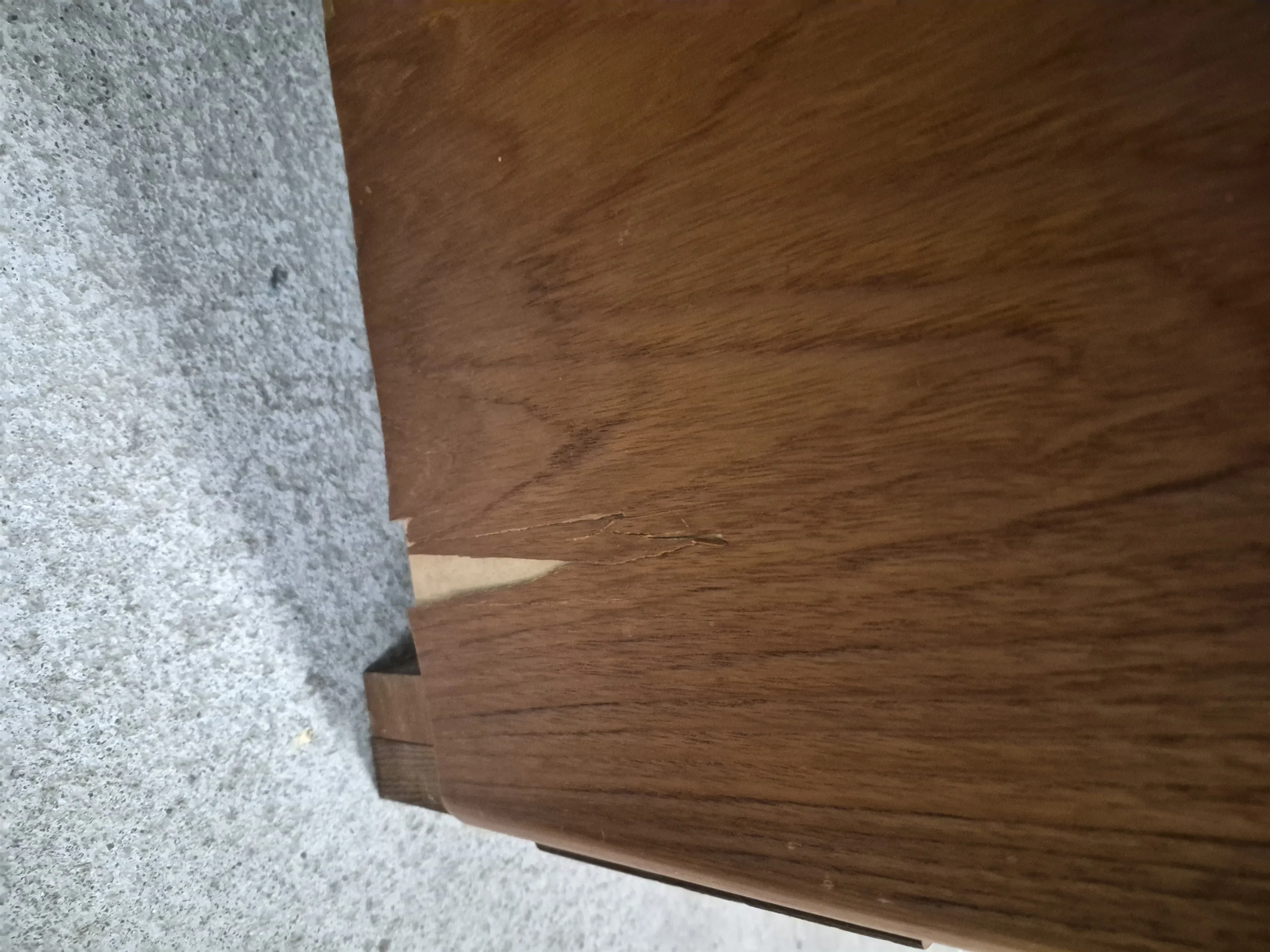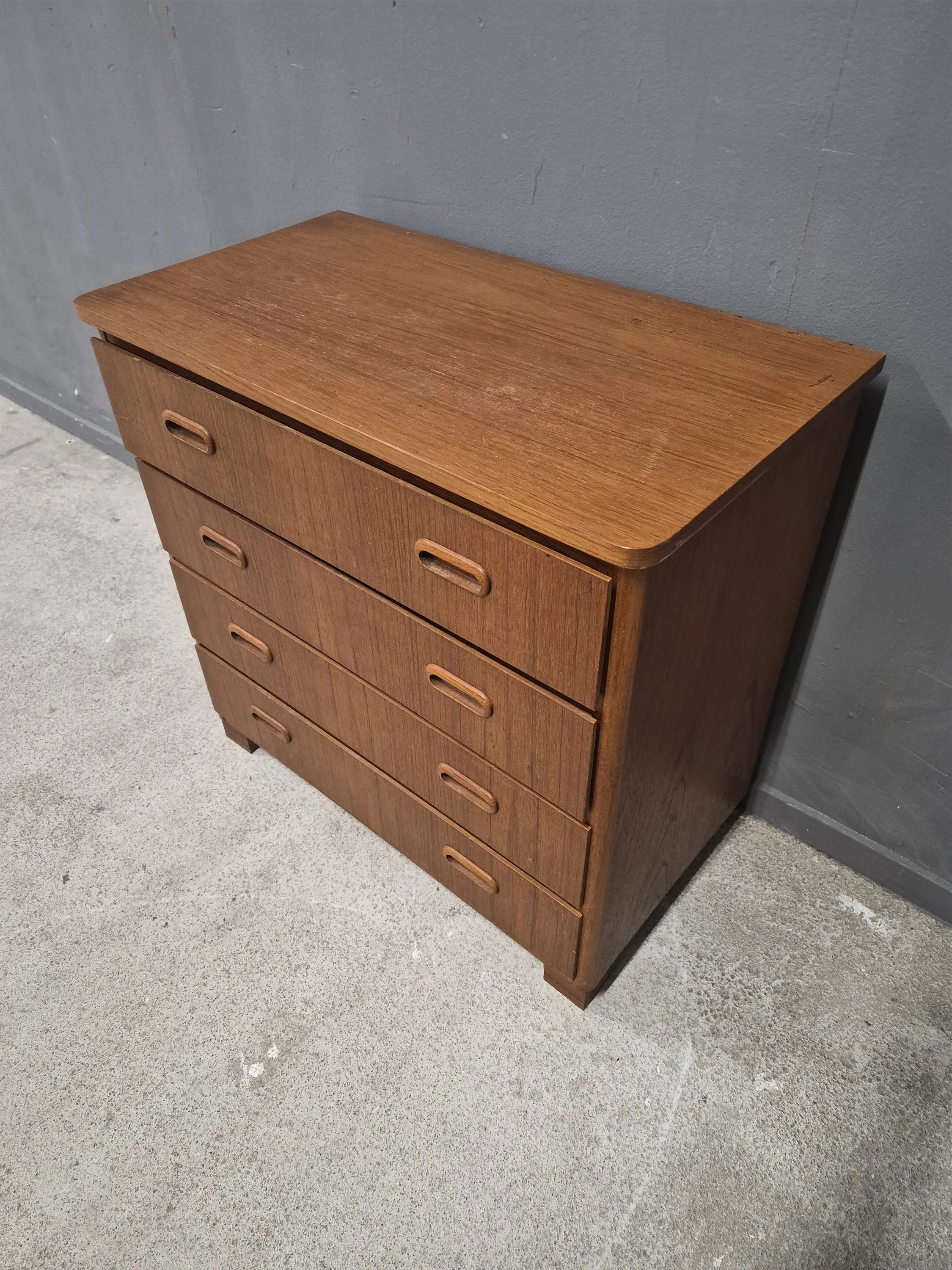 18926. Byrå teakfanér, höjd 66 cm, bredd 70 cm, djup 38 cm, fanérsläpp finns
