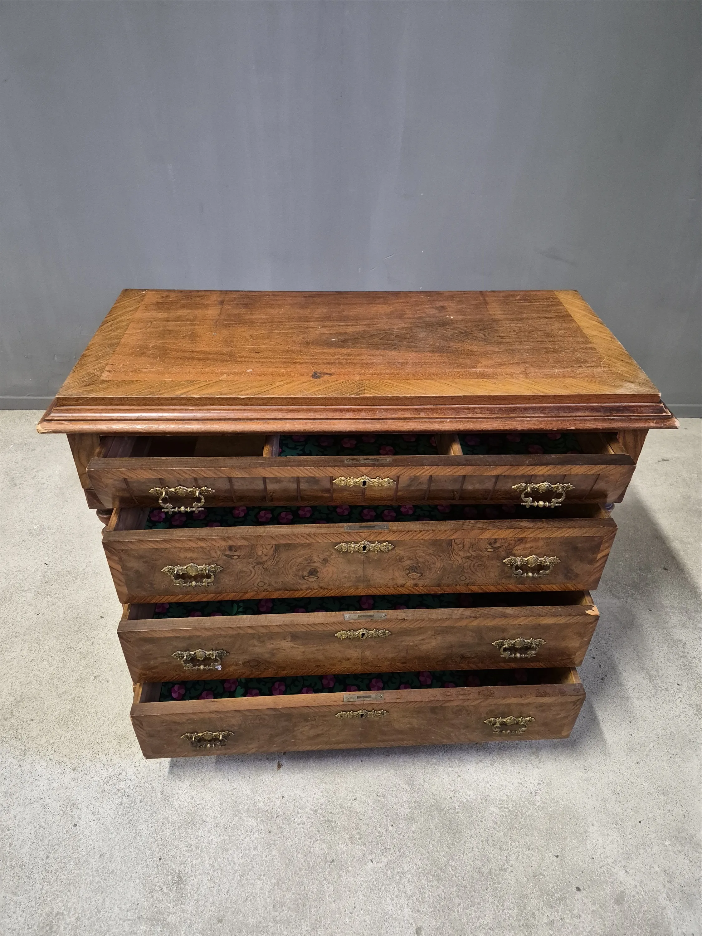 16912. Byrå valnöt, nyränessans höjd 90 cm, bredd 109 cm, djup 49 cm
