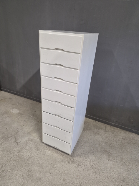 19750. Byrå, 9 lådig, höjd 135 cm, bredd 40 cm, djup 48 cm