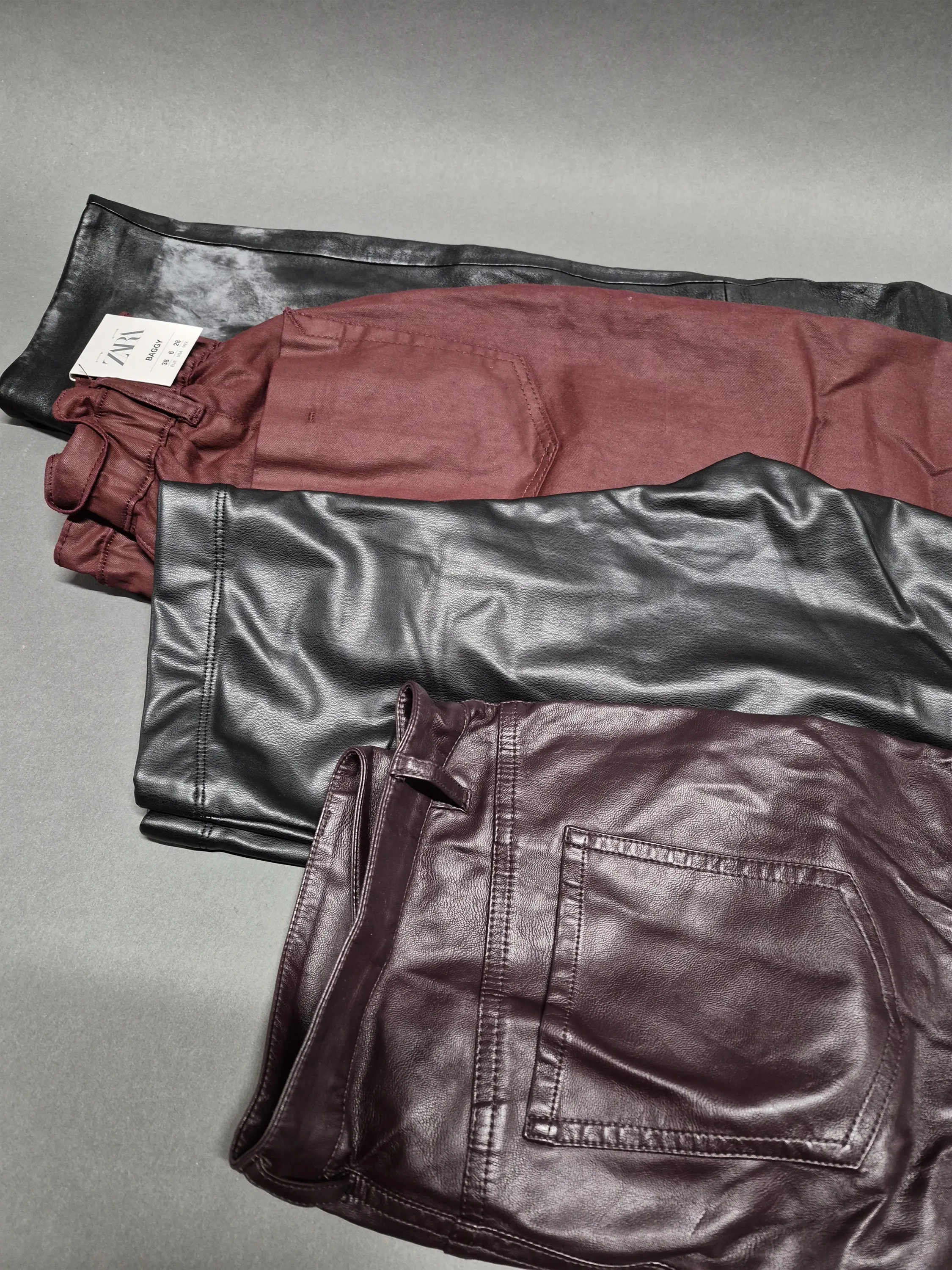 17542. Byxor i konstskinn 4 par, strl 36 & 38