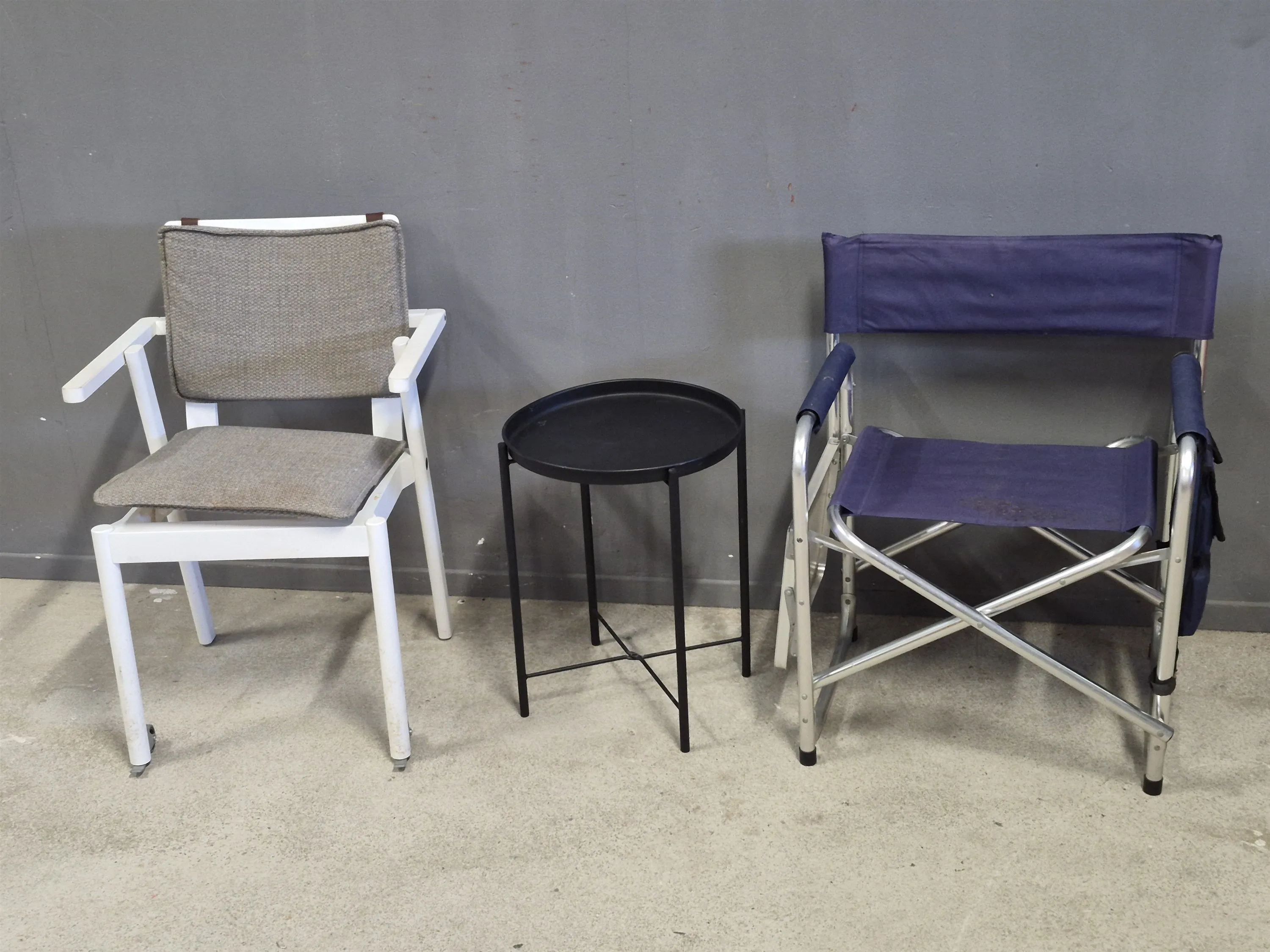 19162. Campingstol med fällbar skiva, stol med hjul & metallbord högsta 80 cm