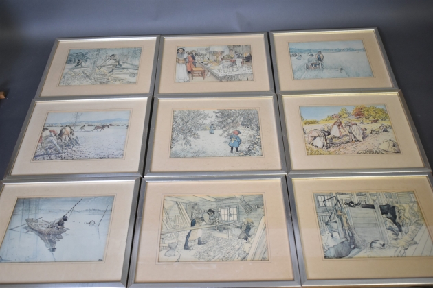 15580. Carl Larsson reproduktioner 9 st mått 36 x 30 cm