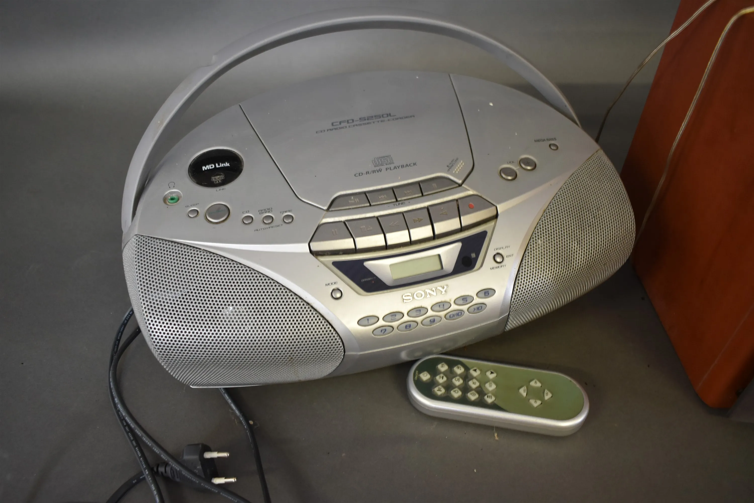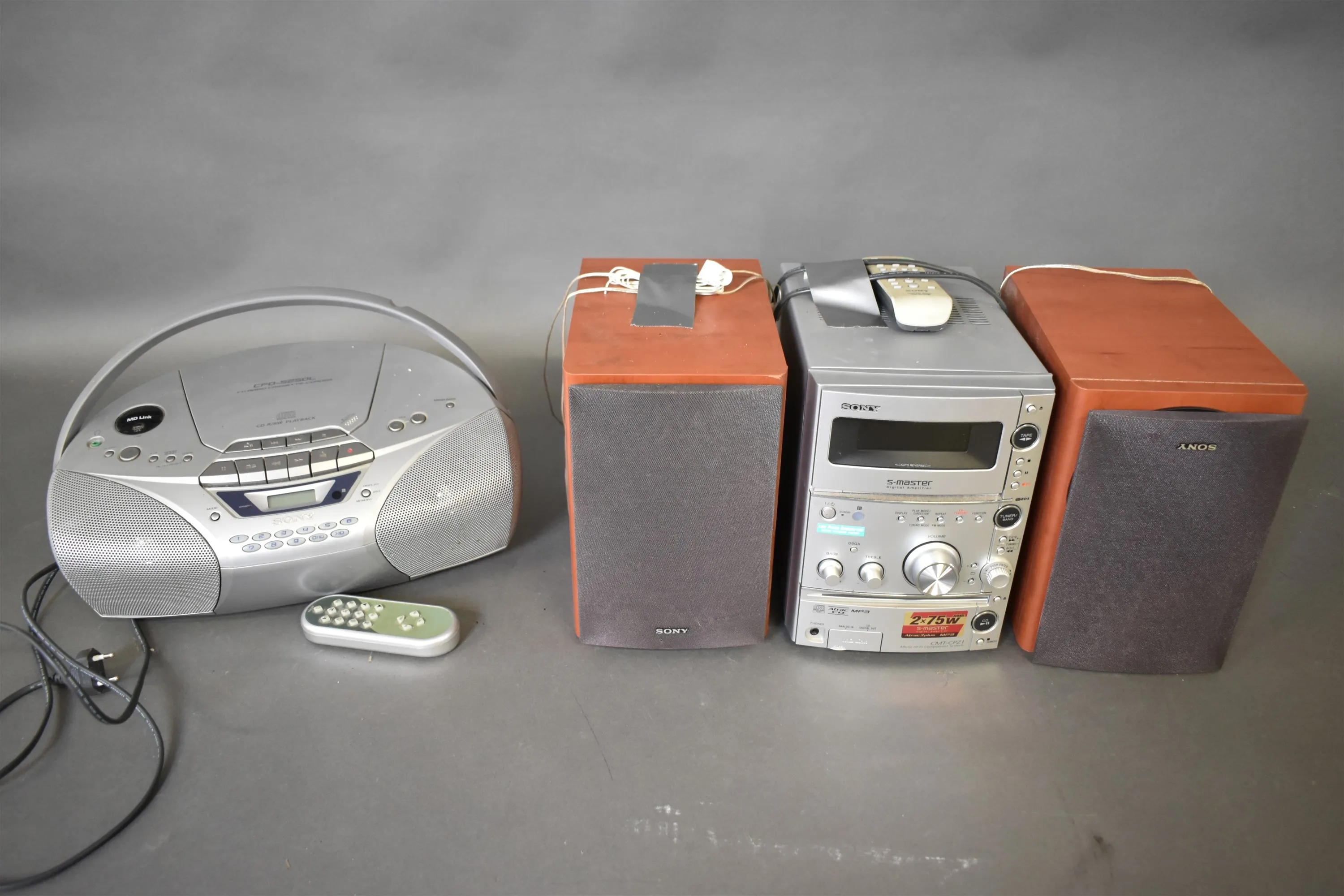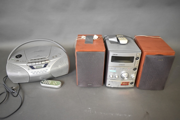 15104. CD spelare med radio & Stereo med högtalare, Sony, högsta 26 cm, fungerar enligt inlämnare