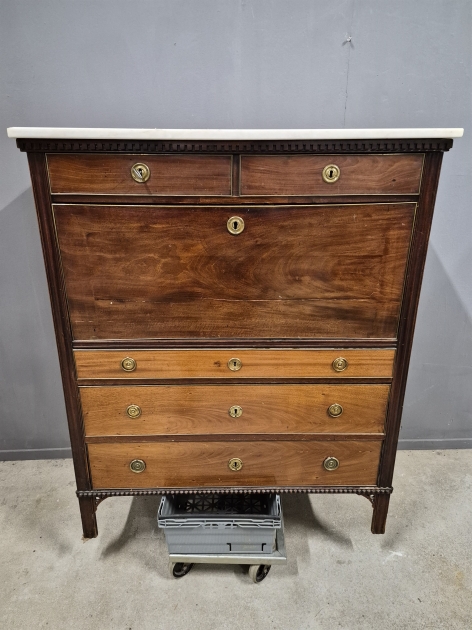 19422. Chiffonjé, mahogny, marmorskiva, sengustaviansk ca 1820, höjd 132 cm, bredd 112 cm, djup 53 cm