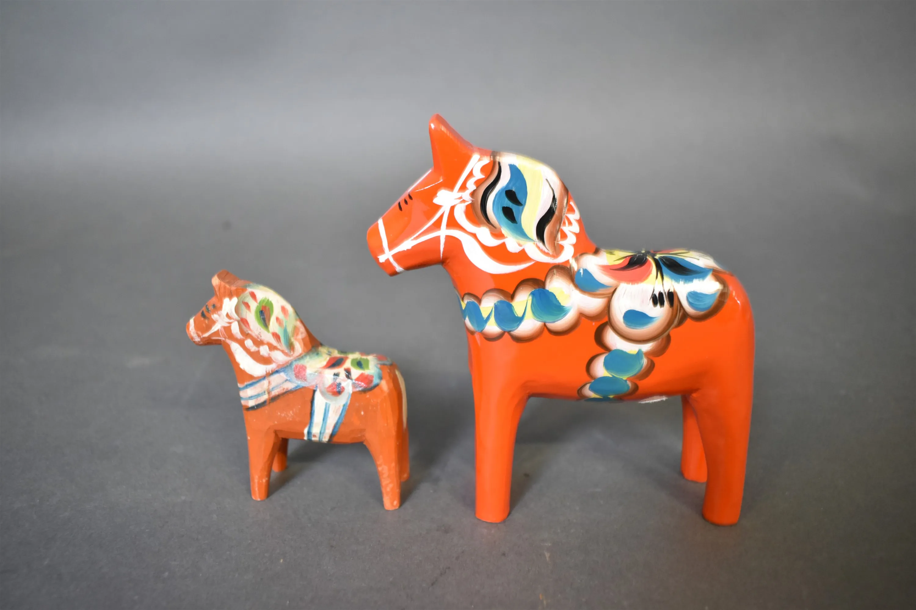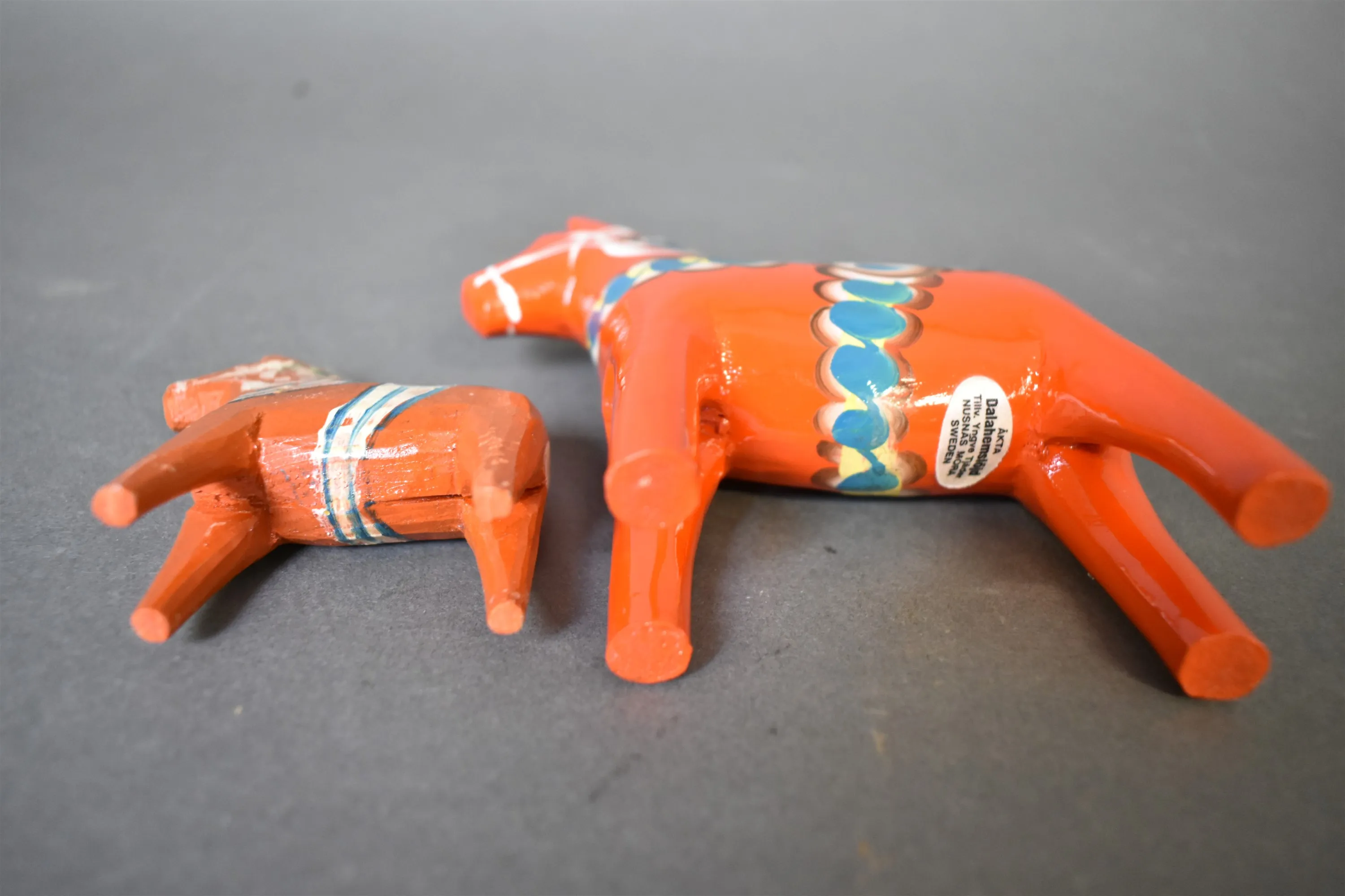 15807. Dalahästar 2 st, bl.a Yngve Tjäder Nusnäs, högsta 13 cm
