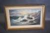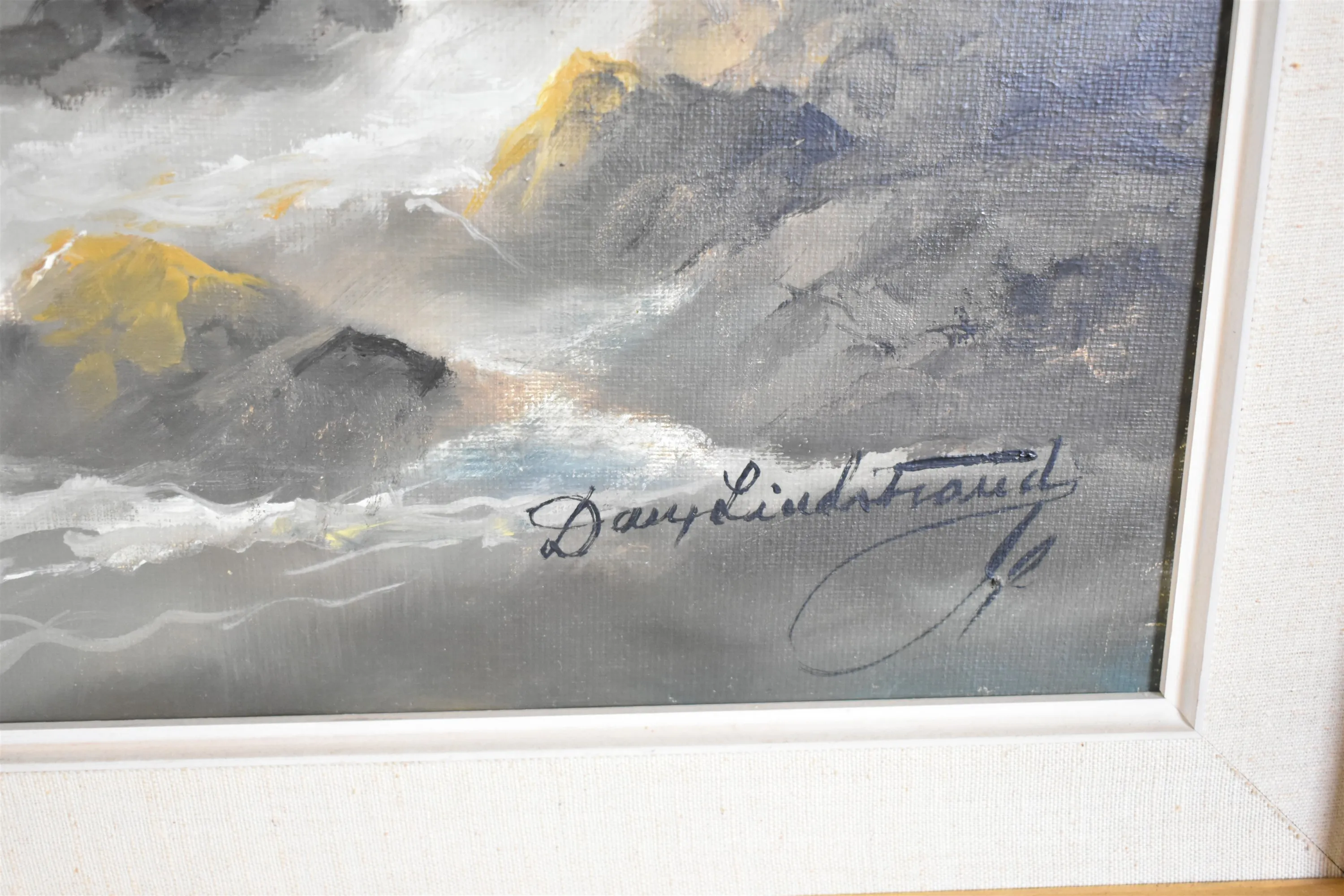 16523. Dan Lindstrand olja på duk, vågor mot klippor, yttermått 80x52 cm