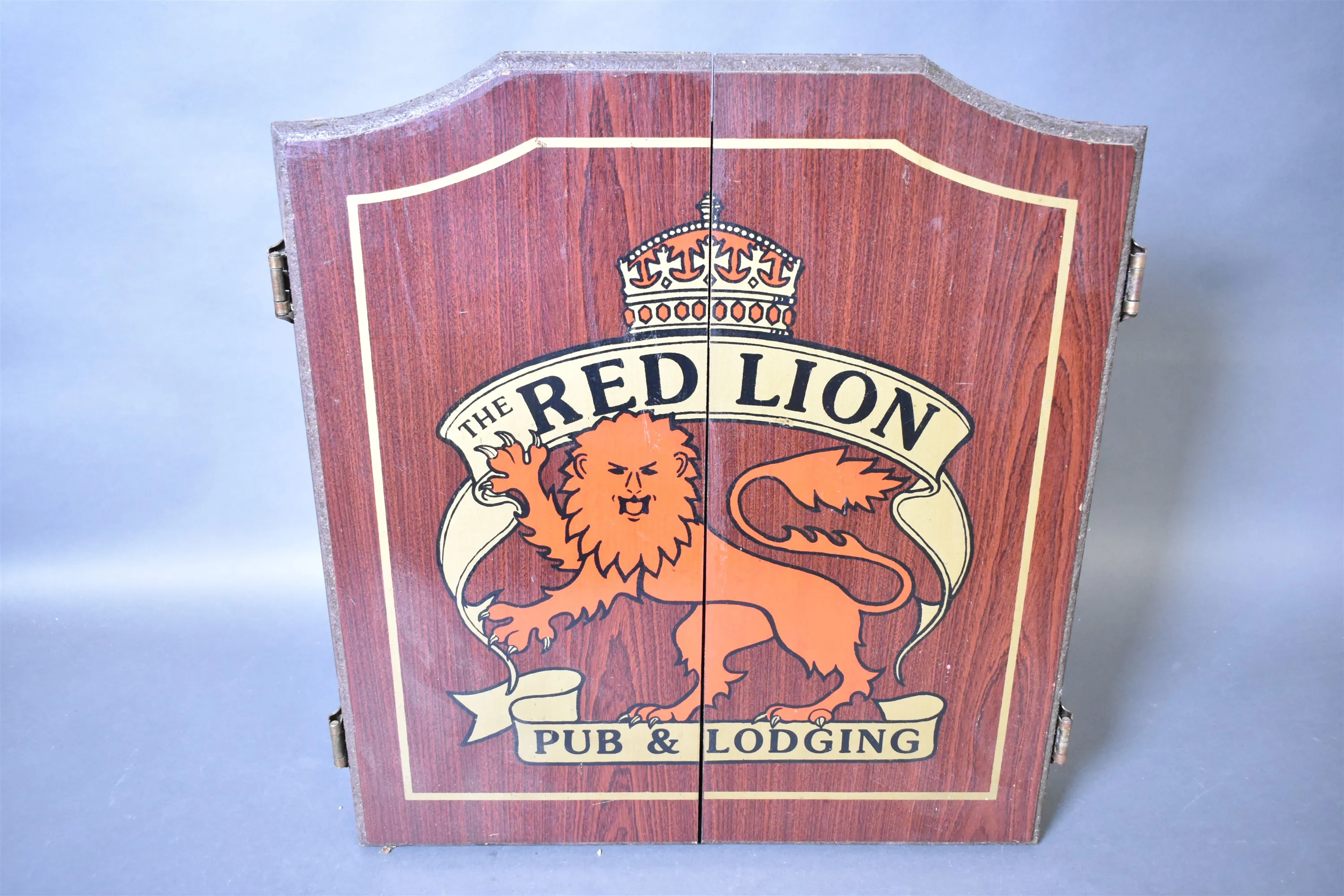 15723. Darttavla med skåp, "Red Lion", höjd 61 cm, bredd 58 cm
