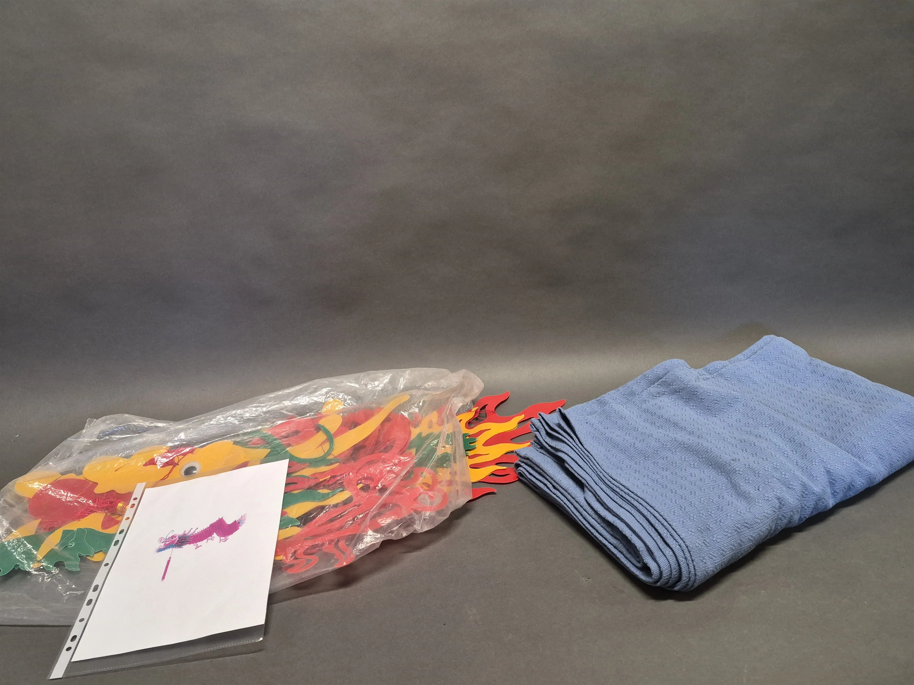 17840. Dekorationsdrake och överkast, mått på överkast 430x250 cm