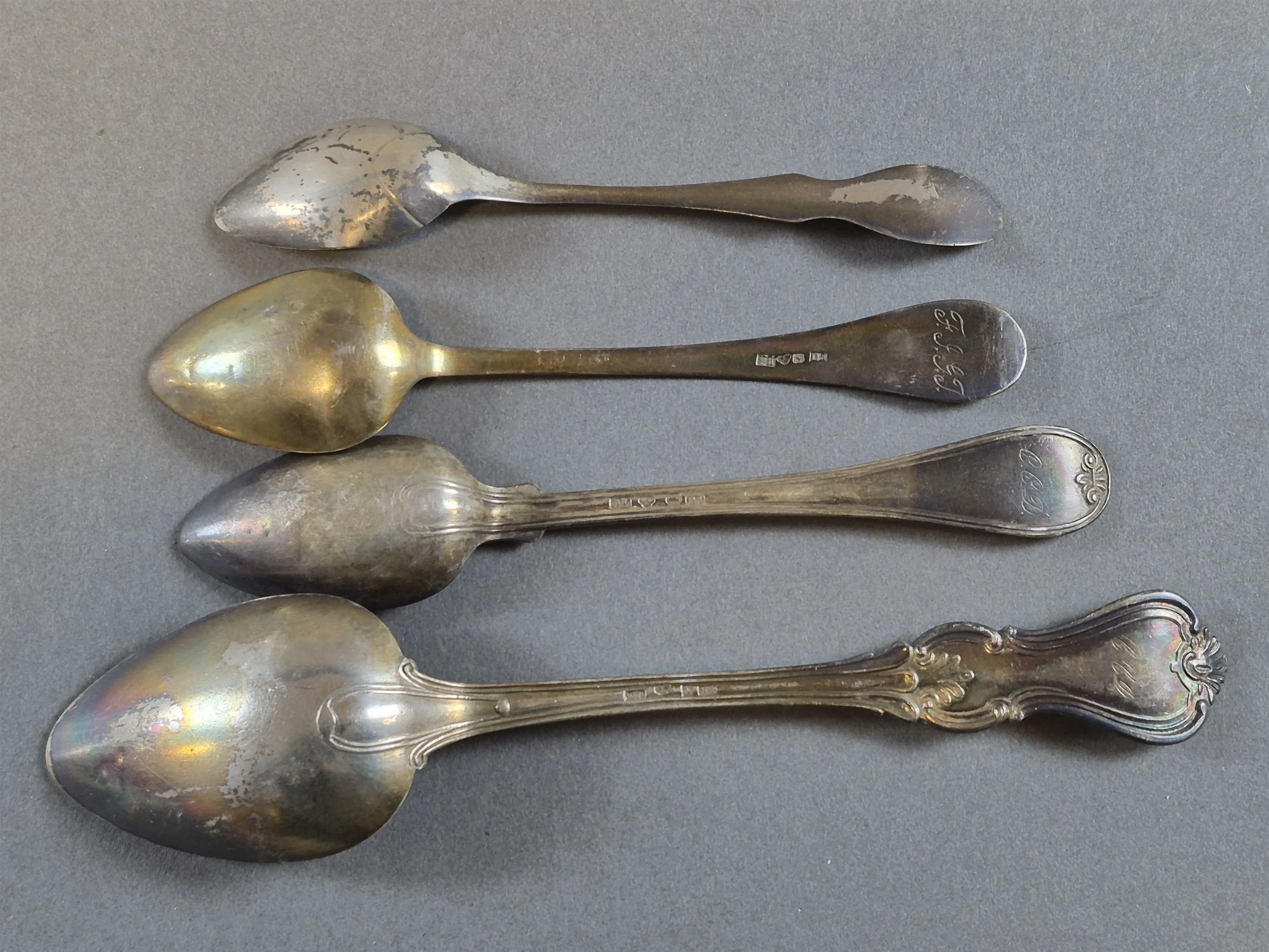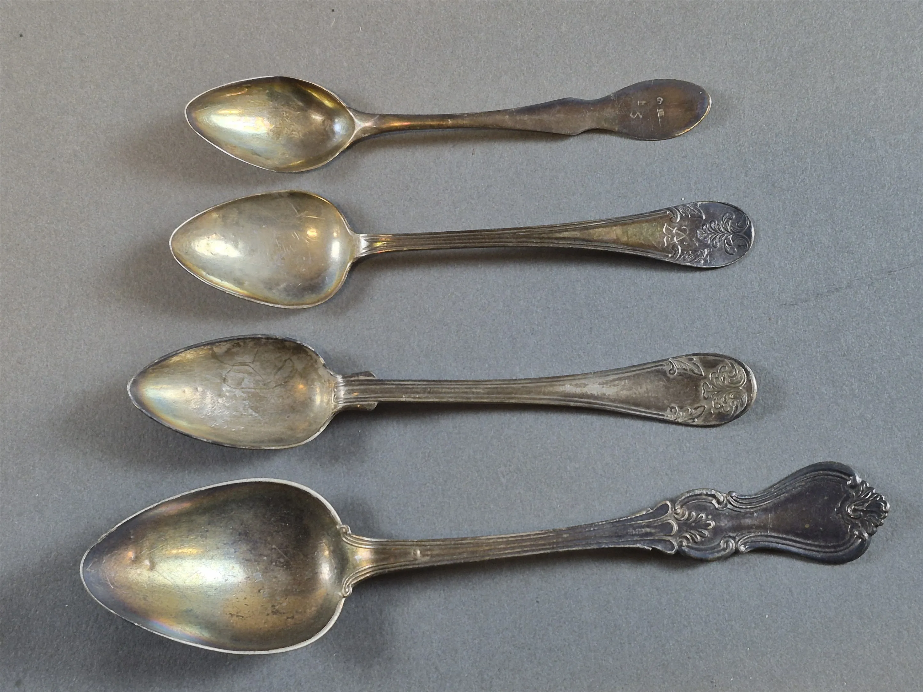 20200. Dessertsked & teskedar 4 st silver, längsta18.5 cm, vikt 77 gram