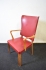 10954. Direktörsstol, 40 tal, alm med rött konstläder, höjd ca 100 cm