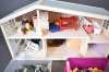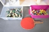 2399. Dockskåp Lundby med tillbehör & 3 lådor småfigurer bl.a soldater bredd 70 cm