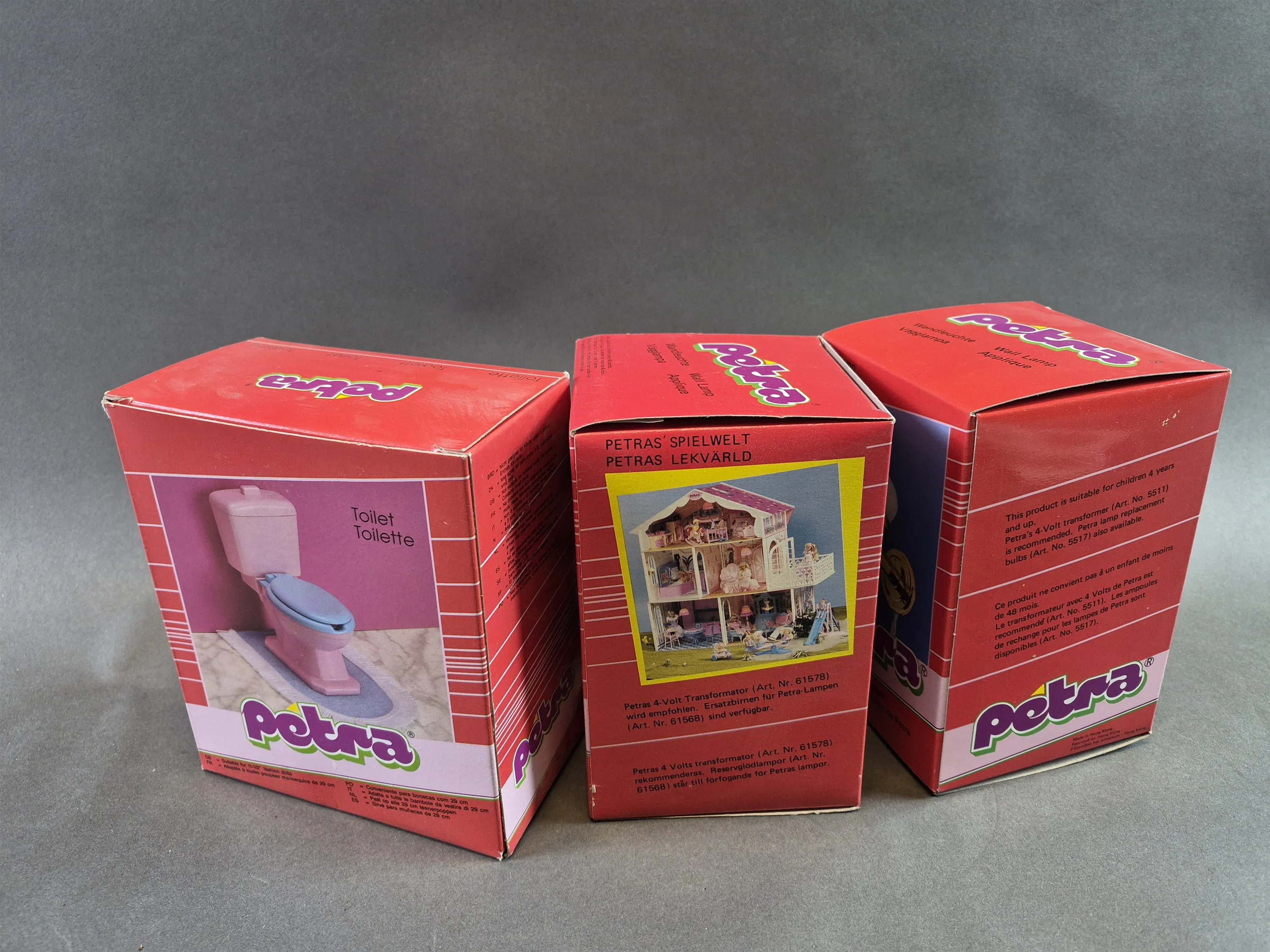 20160. Docktillbehör Petra toalett och vägglampor 2 st, nytt i förpackning, högsta höjd 16 cm