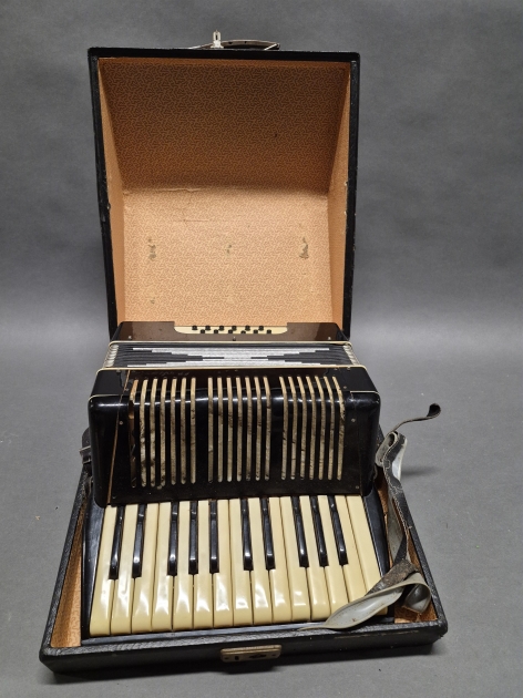 18026. Dragspel med låda, längd på låda 38 cm