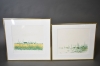 1747. Eke Bjerén litografi 2 st, rapsfält och stenar i vattnet, signerade, största mått 40x39 cm