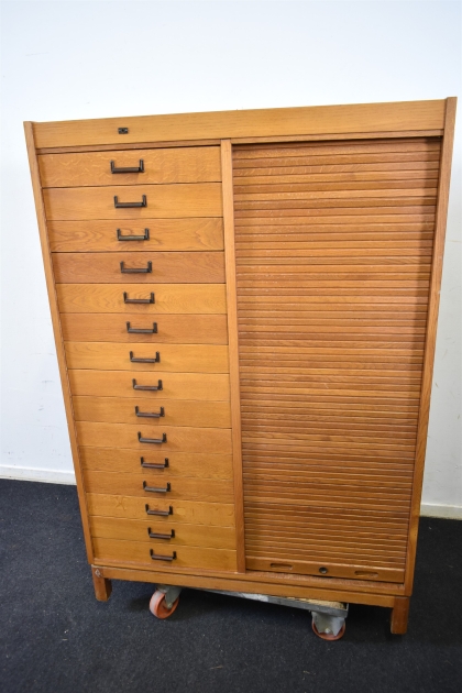 14363. Eksåp med jalusi och lådor, höjd 145 cm, bredd 98 cm, djup 40 cm