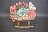 7896. Eld-/brasskärm perforerad plåt, blomsterkorg, höjd 48 cm