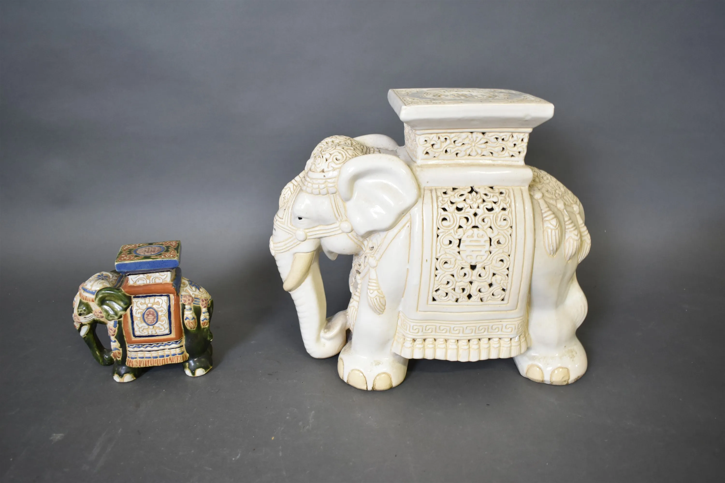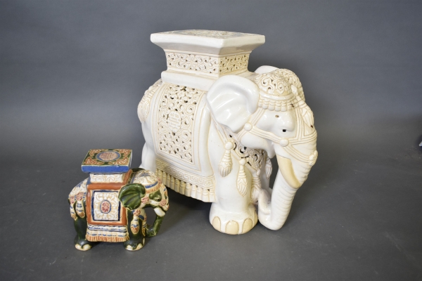 10502. Elefantpiedestaler, 2 st keramik, högsta 45 cm
