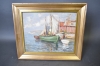6364. Erik Jönsson olja på pannå, "Fiskeläge" mått 47 x 55 cm