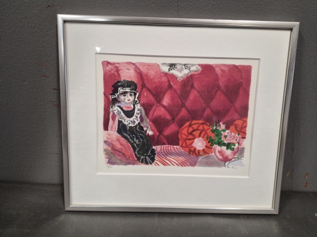 18856. Evy Låås litografi, Docka" mått 32 x 37 cm