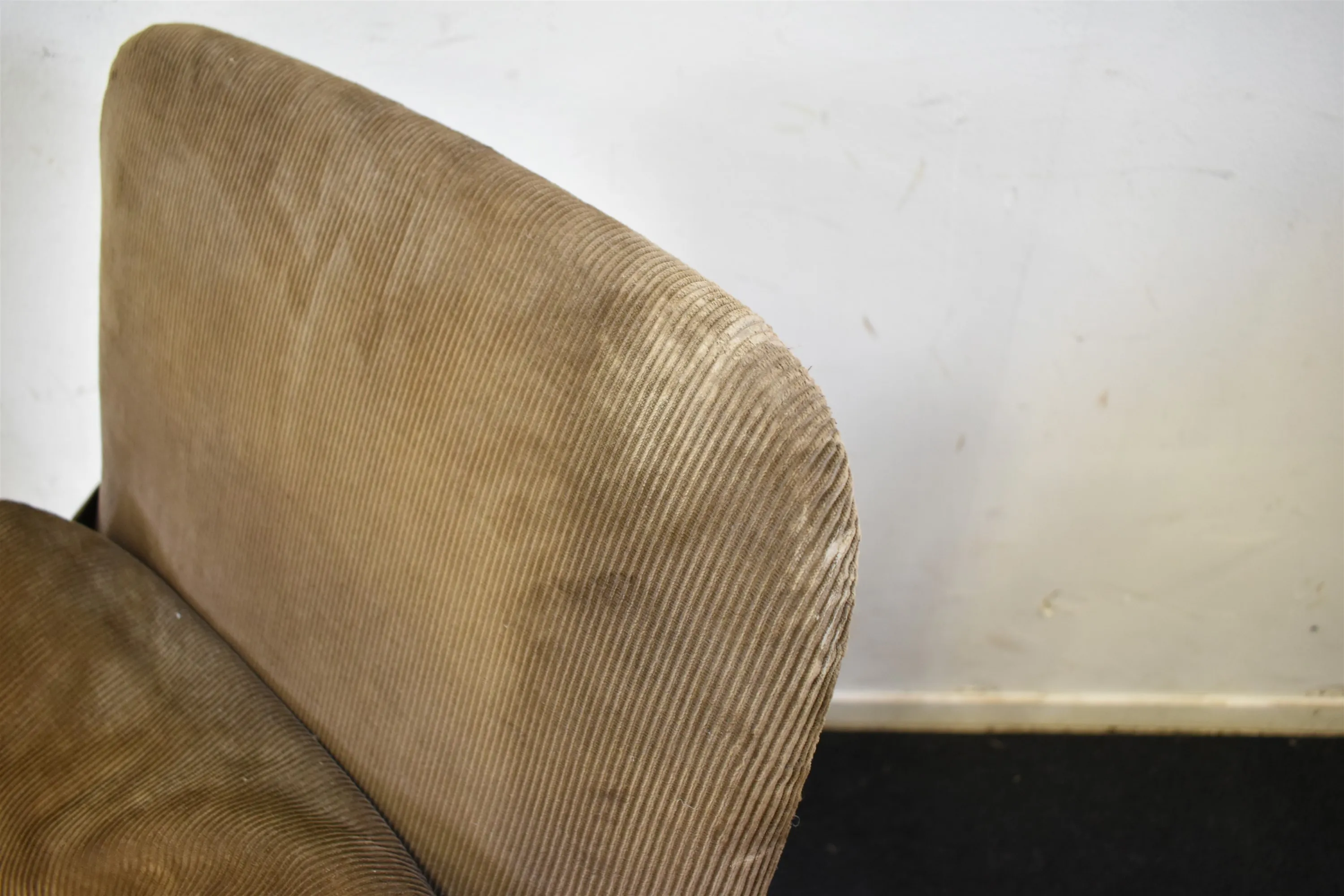 Fläckar och slitage finns