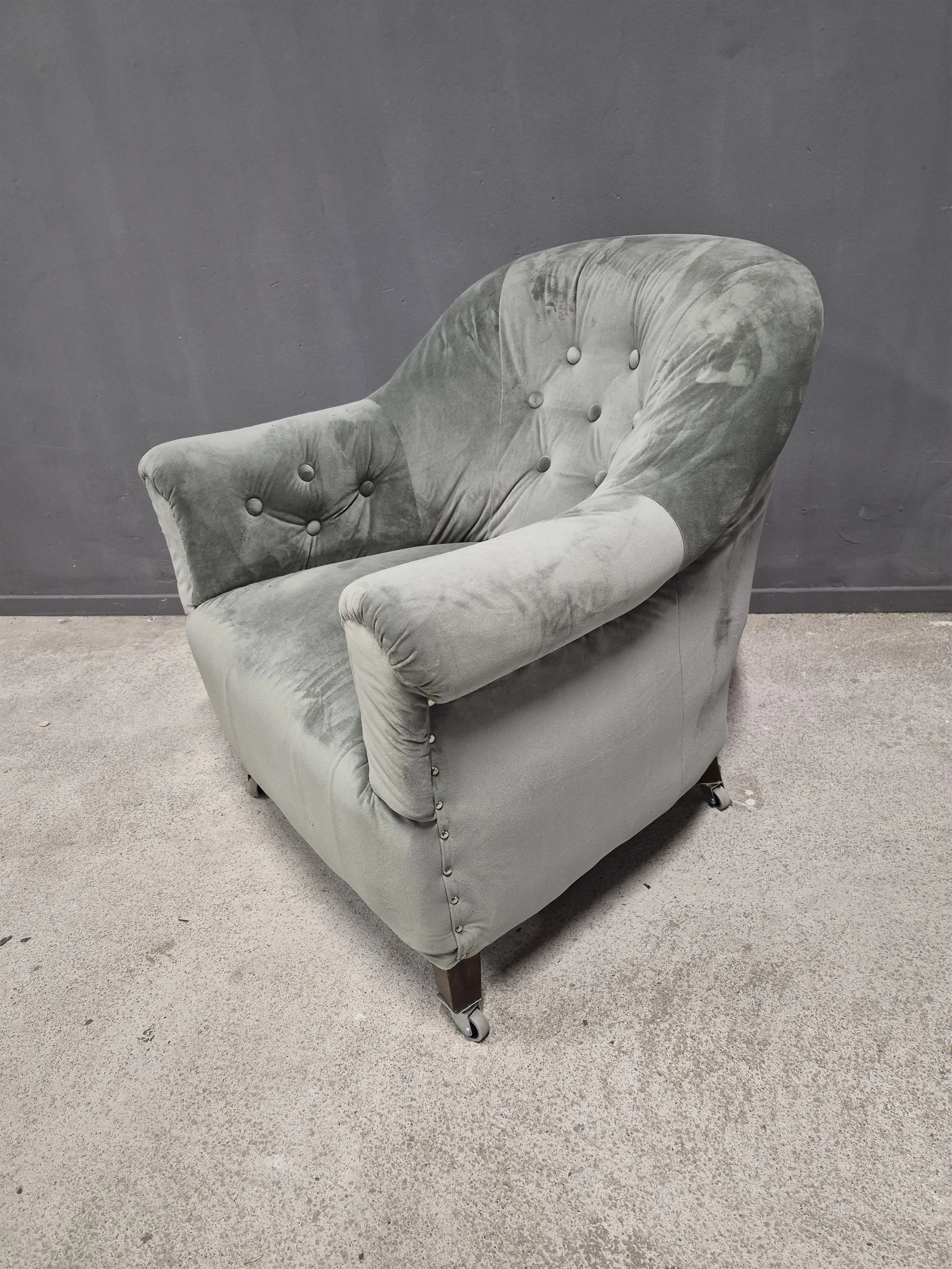 17487. Fåtölj klubbmodell på hjul, plysch höjd 84 cm