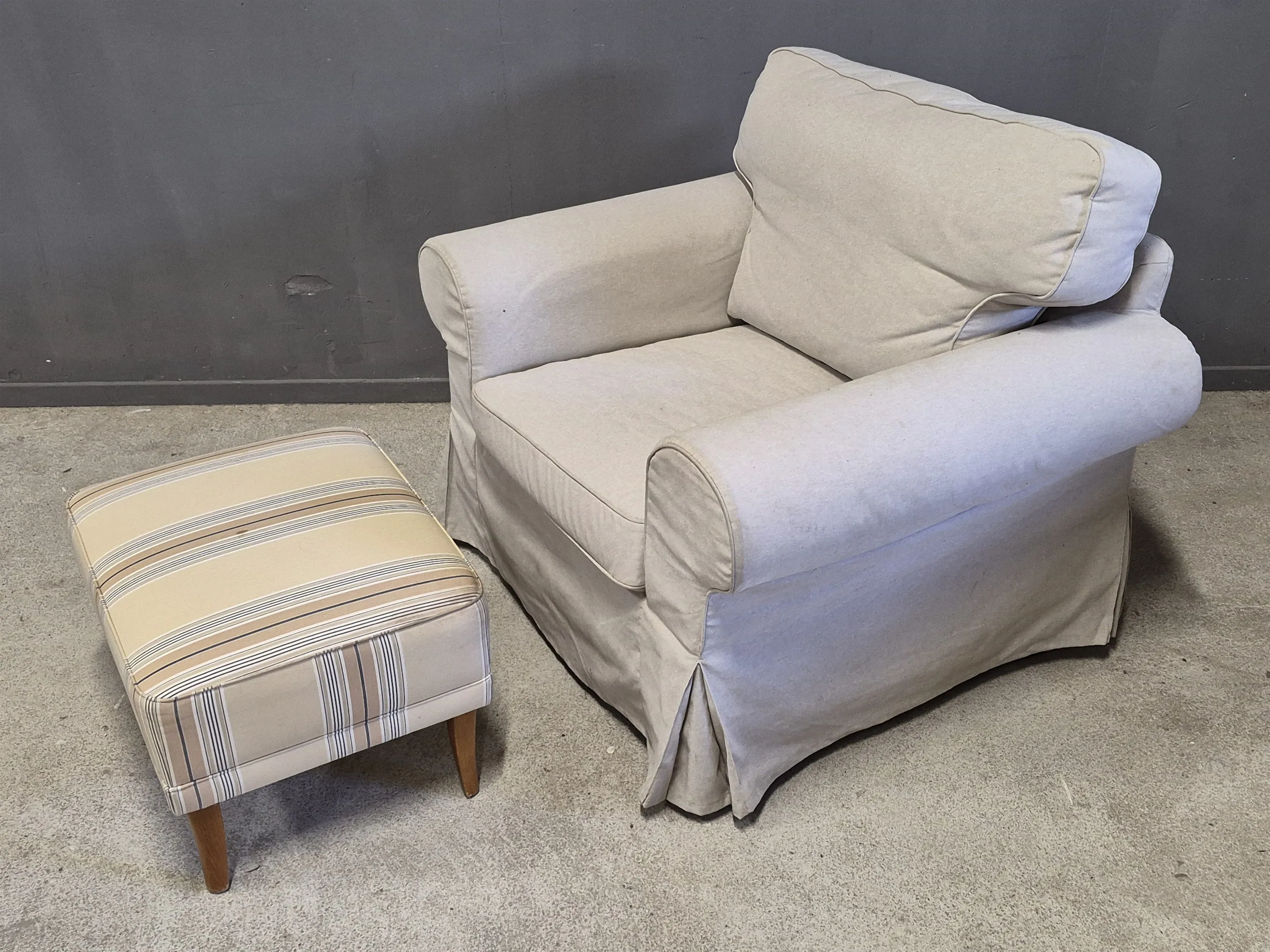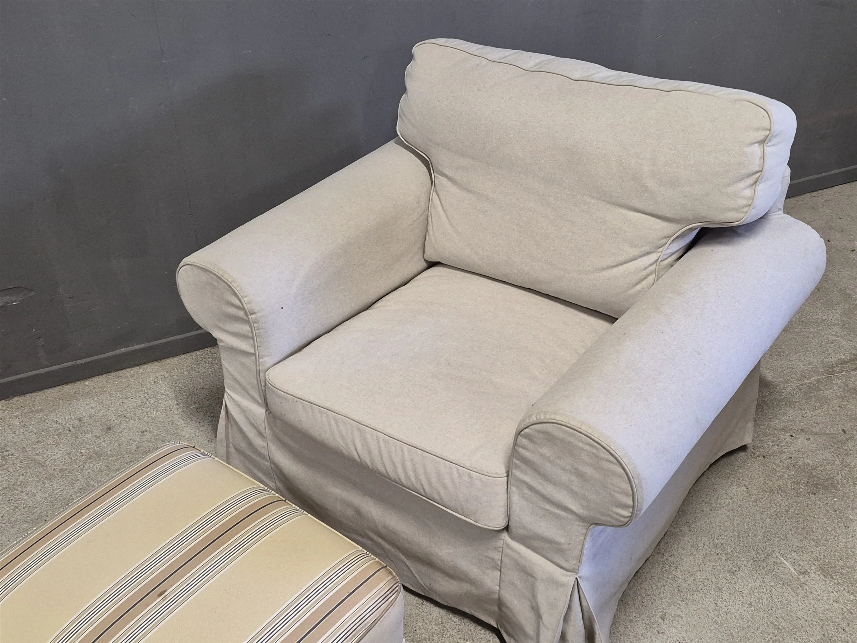 18735. Fåtölj med avtagbar klädsel & fotpall, högsta 90 cm