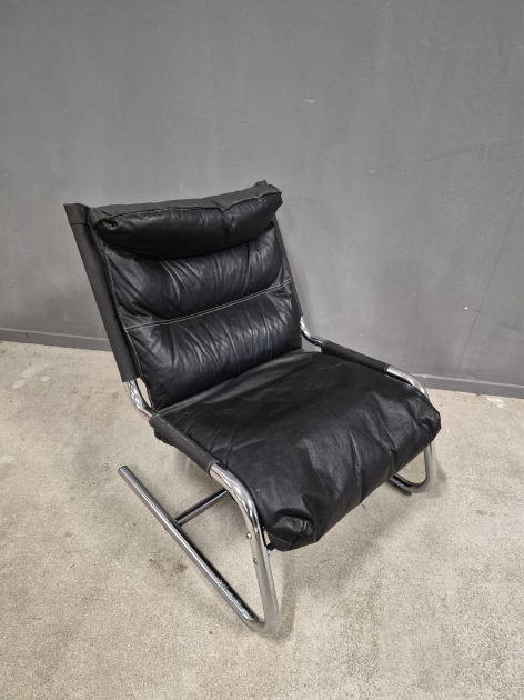 18708. Fåtölj med stålram 1970-tal, höjd 77 cm