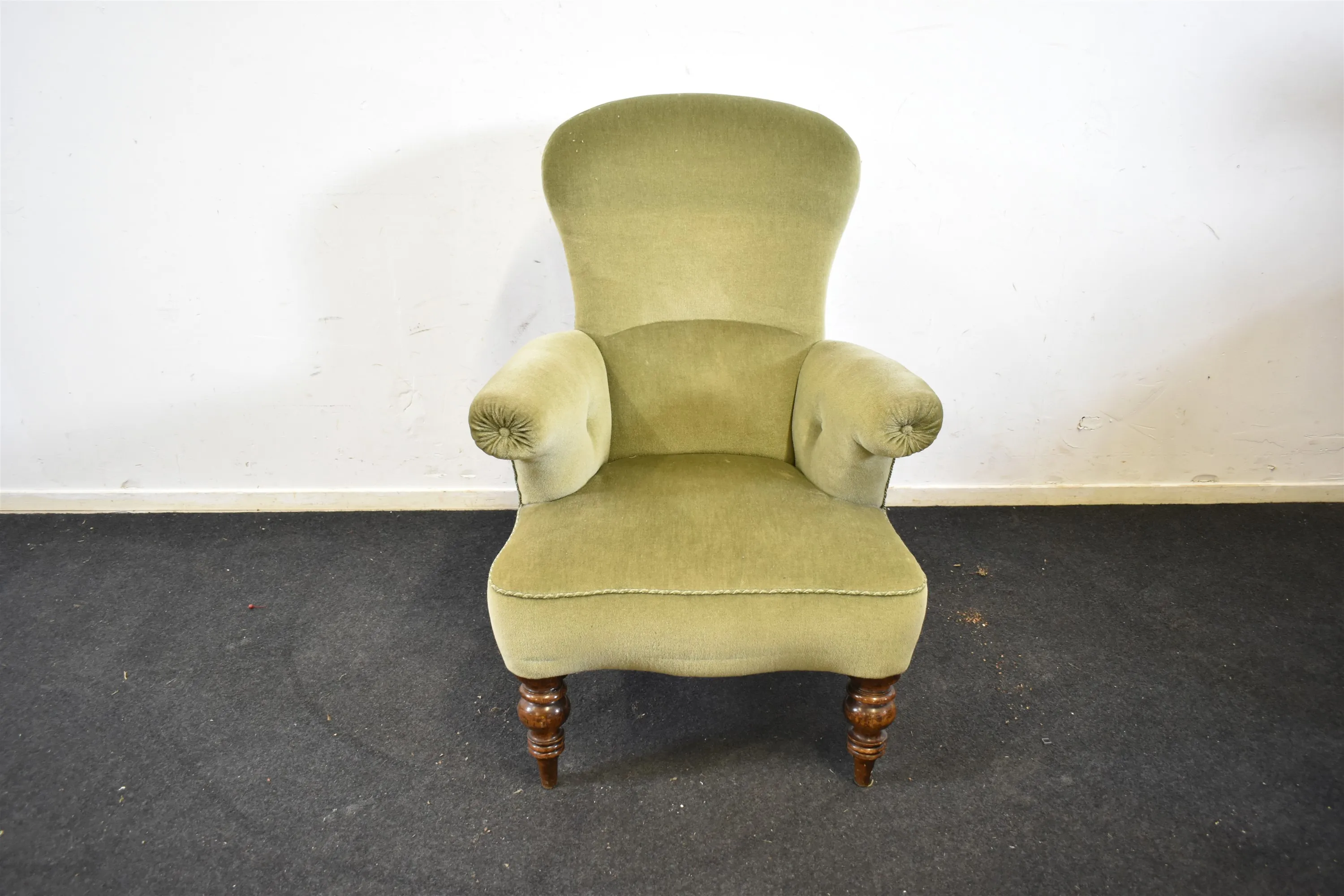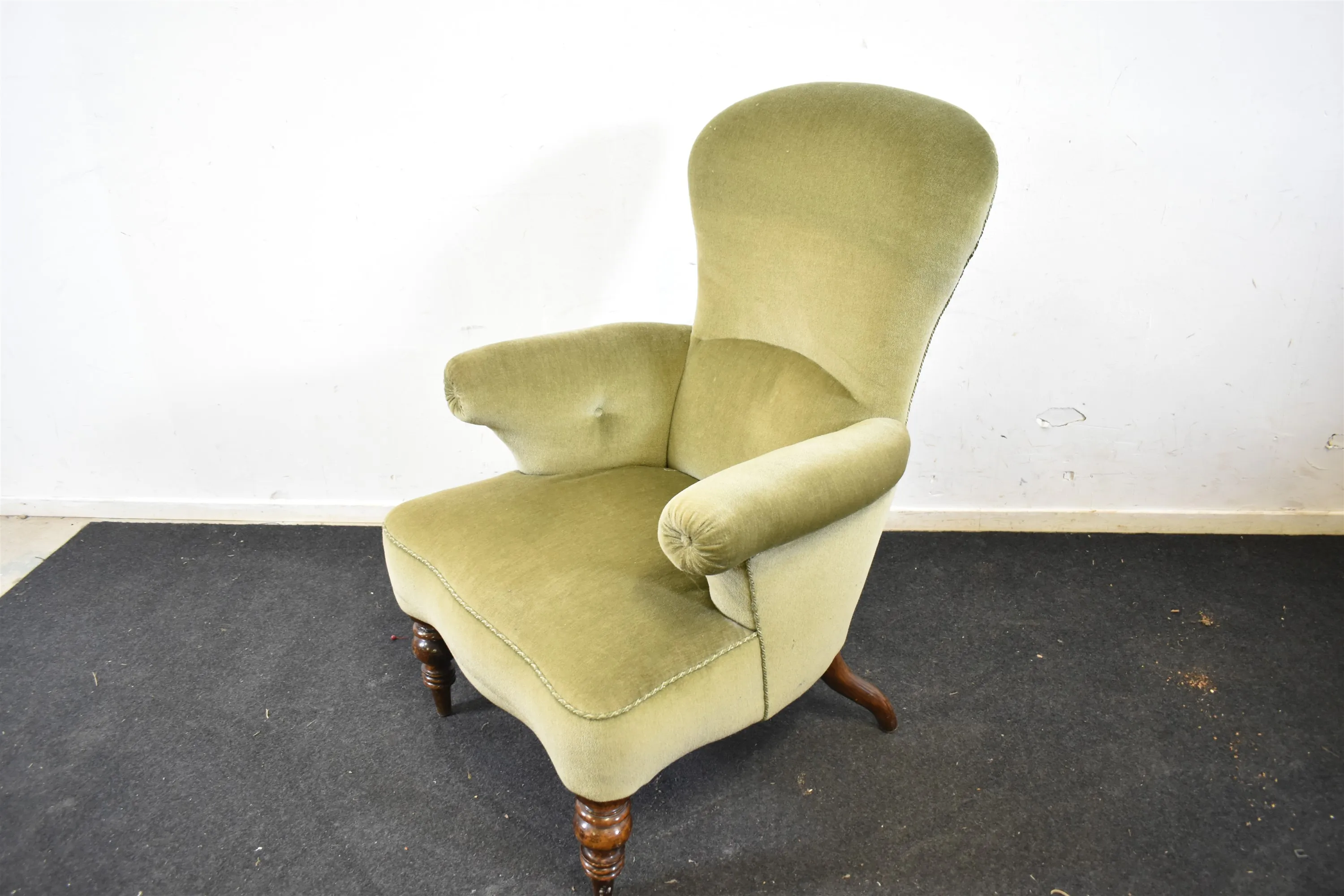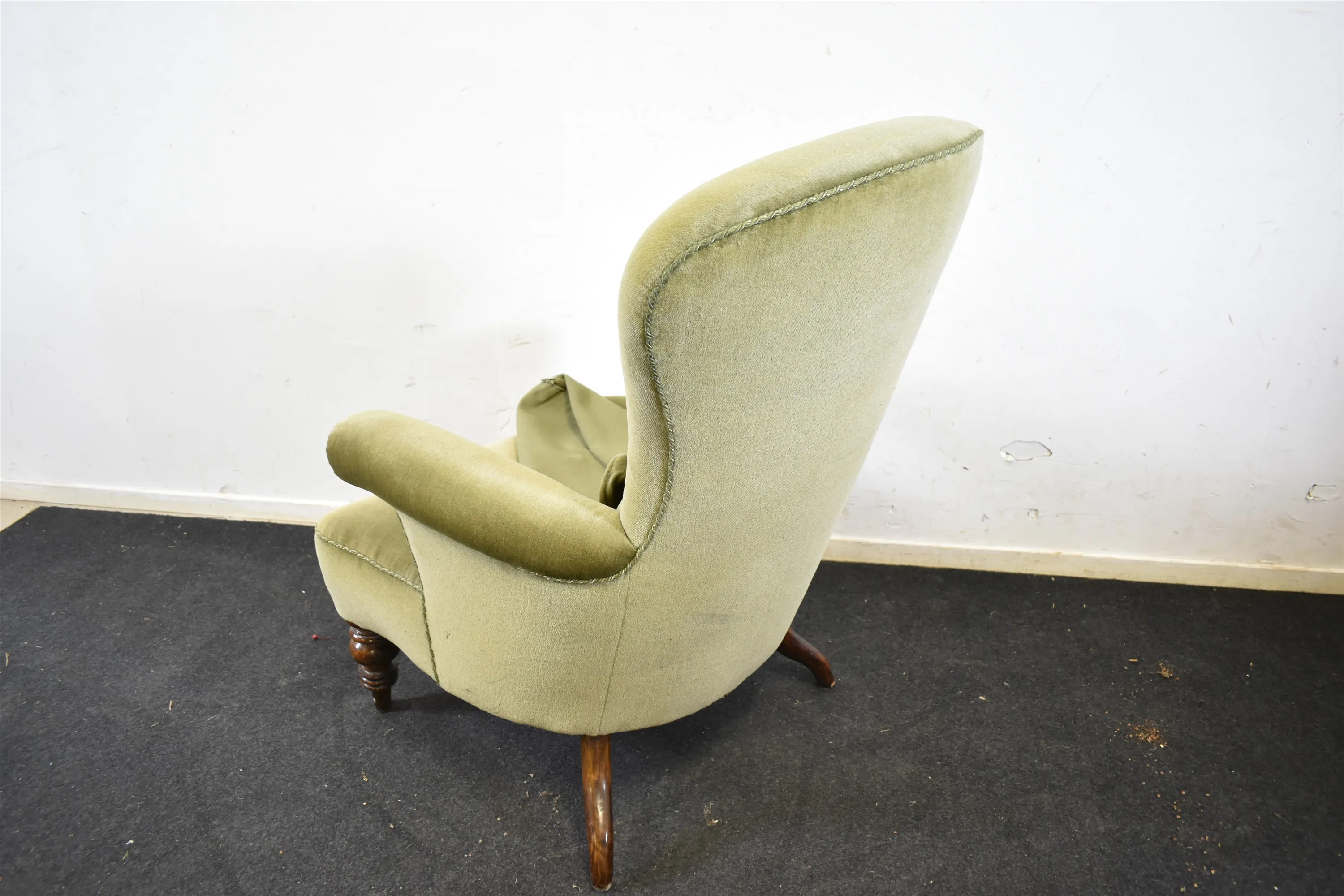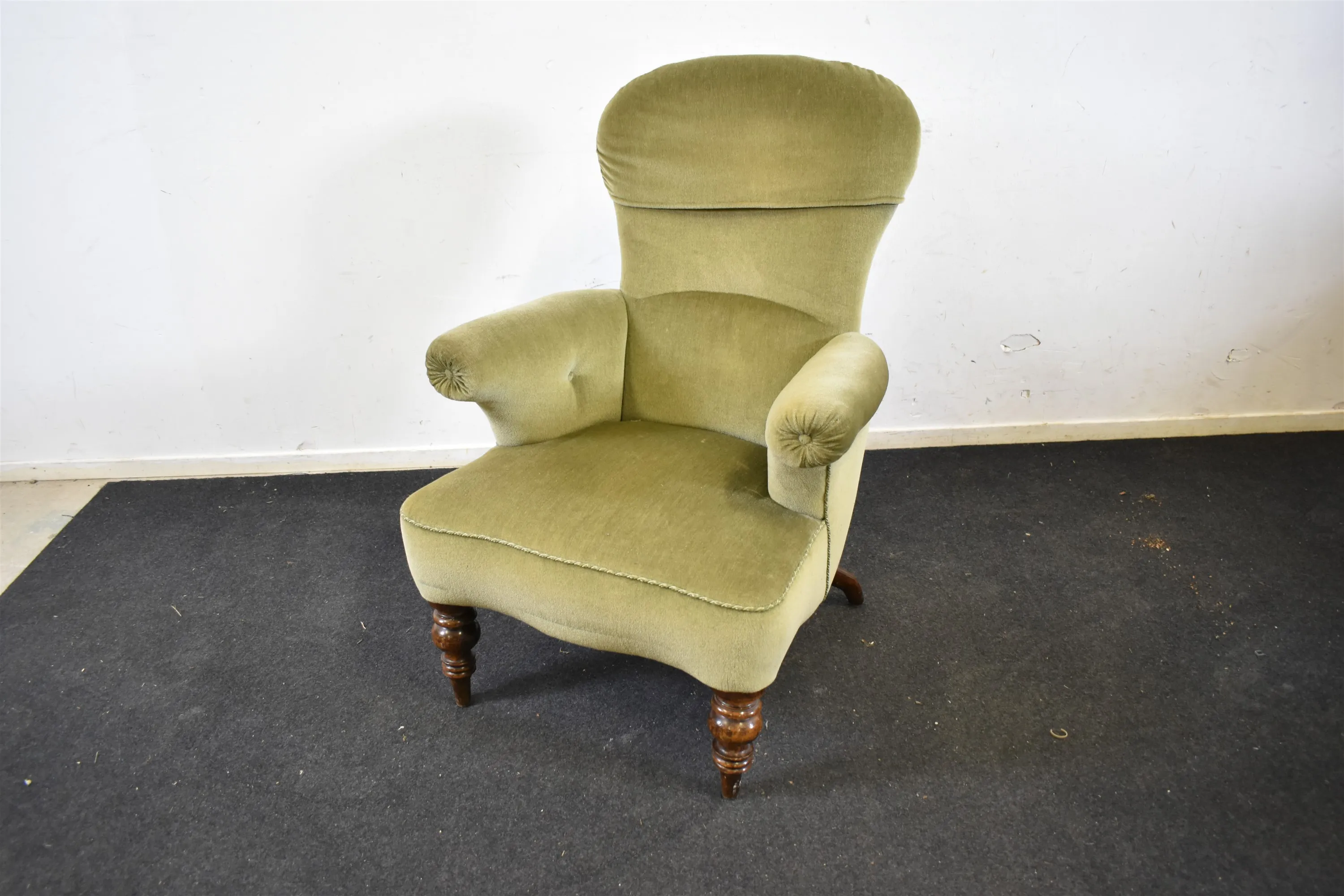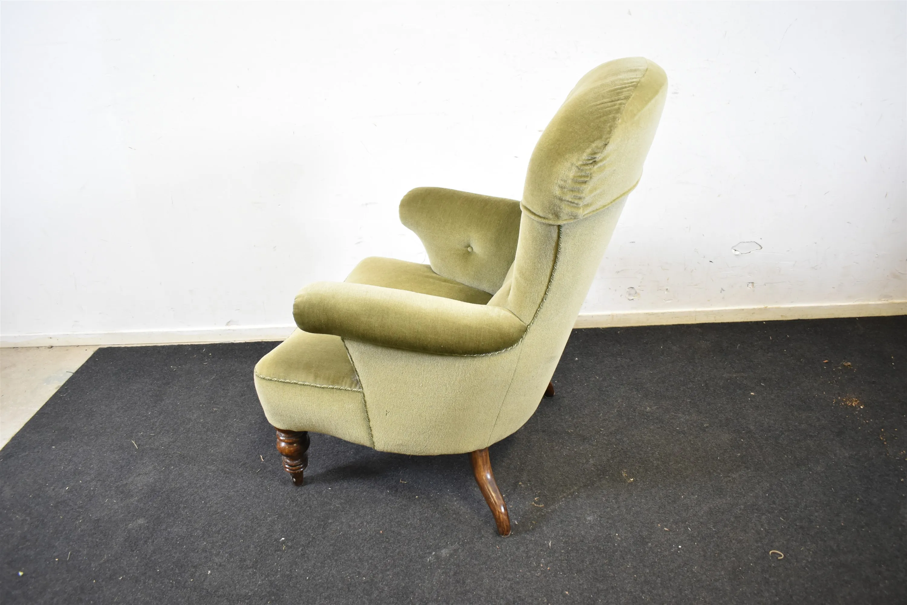 13192. Fåtölj sent 1800-tal, plysch höjd 105 cm