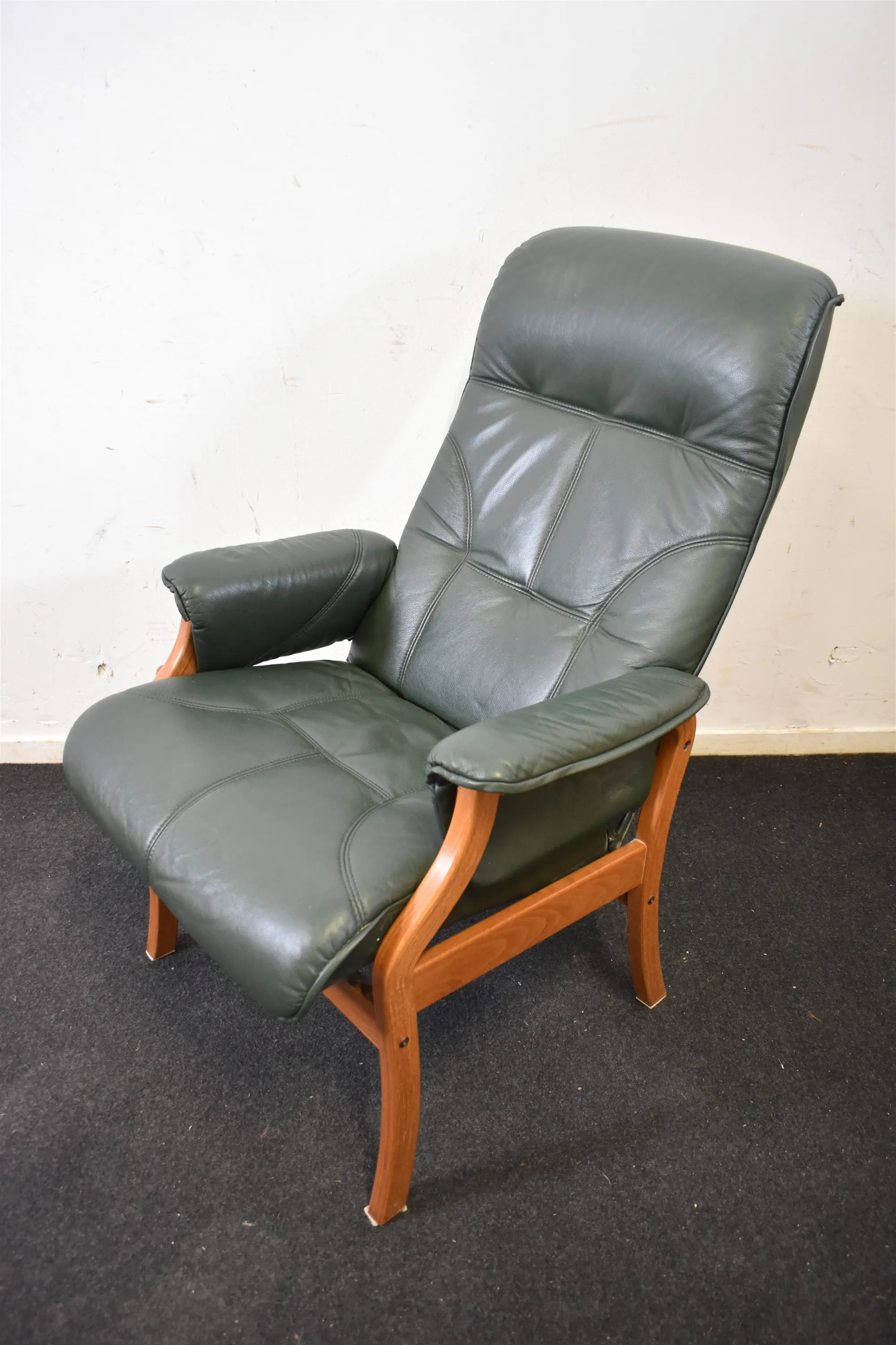 14527. Fåtölj, skinn, fällbar rygg, höjd ca 110 cm