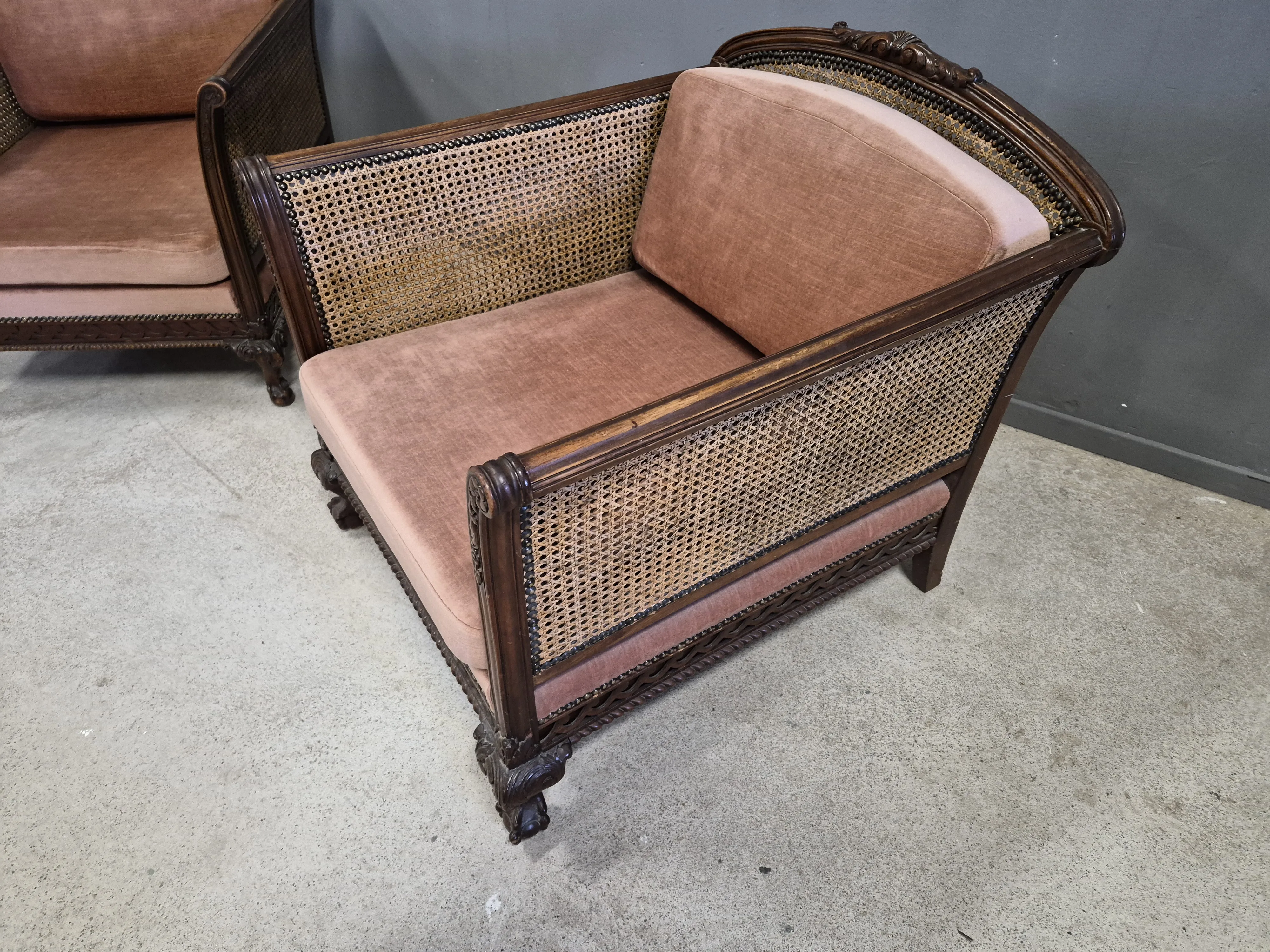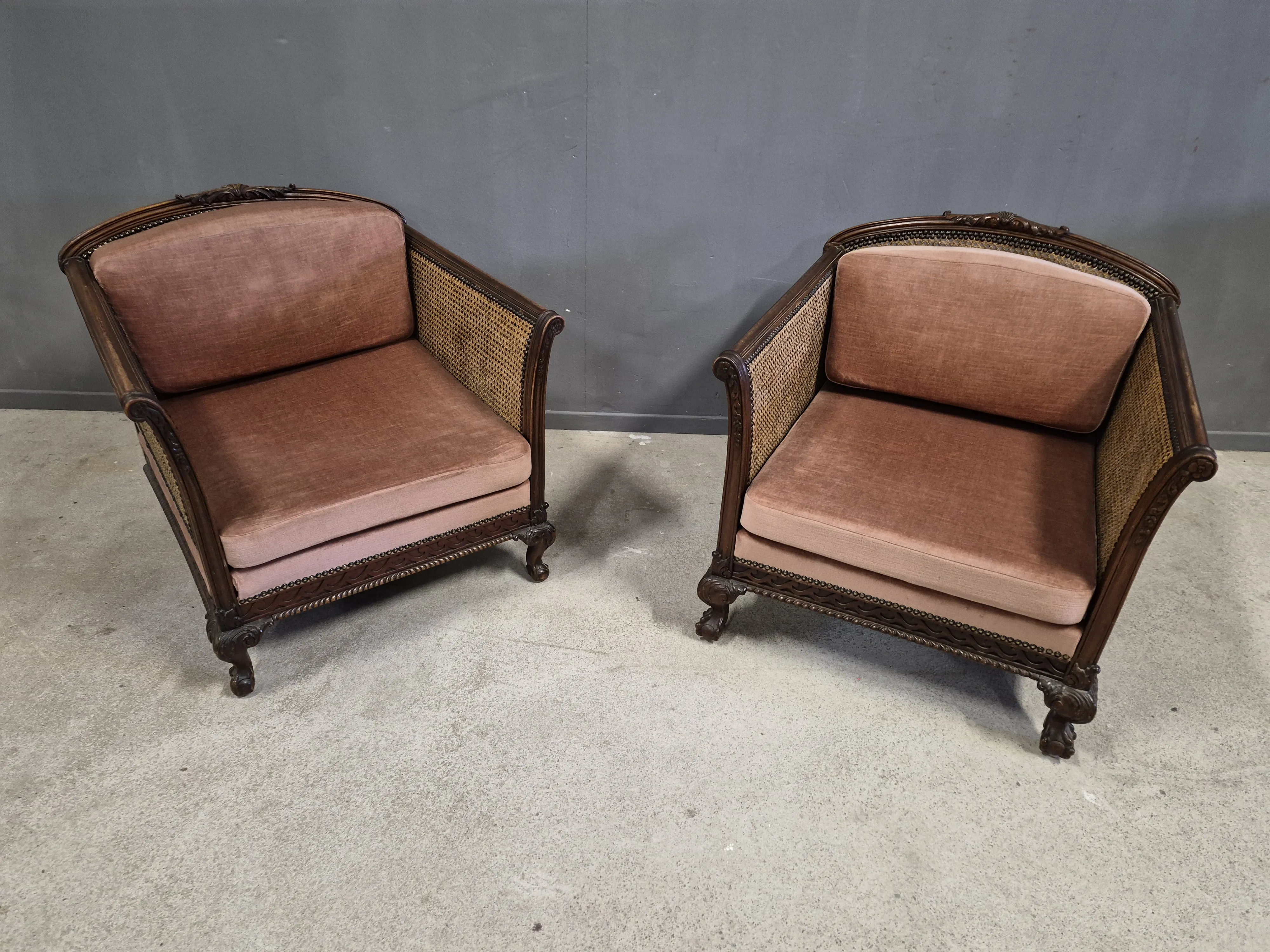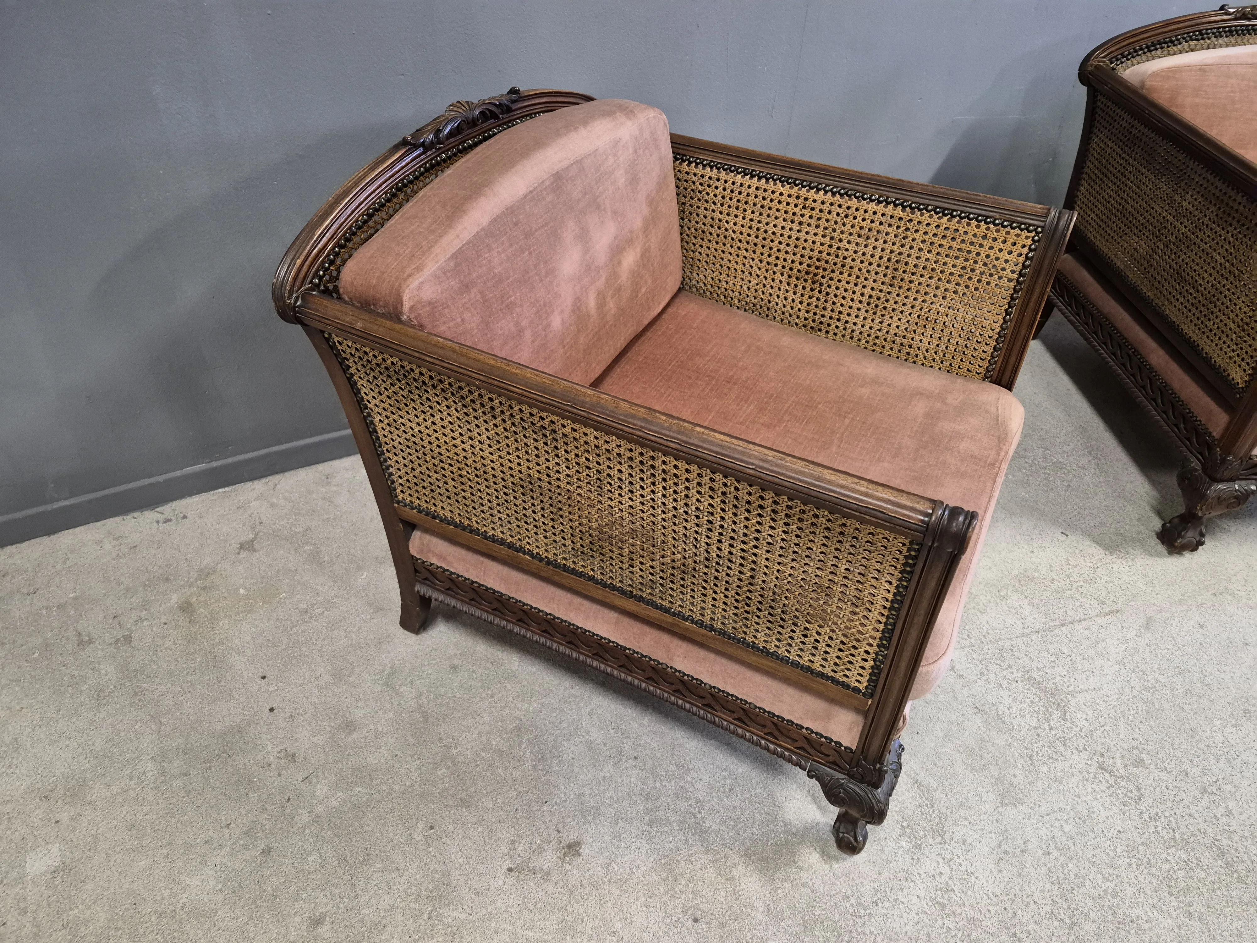 19129. Fåtöljer, 1 par, Chippendale stil, ek/rotting, höjd 45 cm
