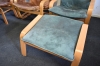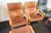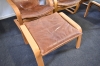 8784. Fåtöljer 3 st Ikea, skinn och böjträ med 2 st fotpallar, höjd 90 cm