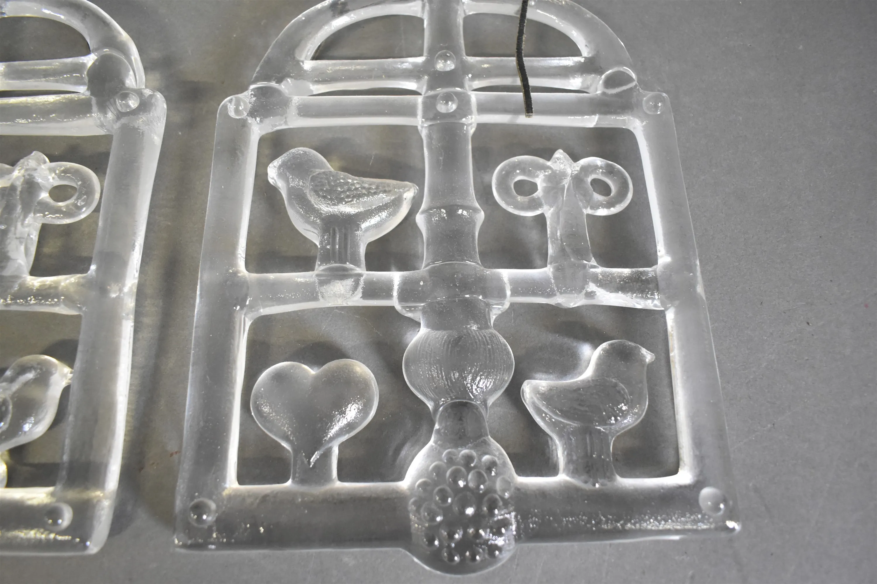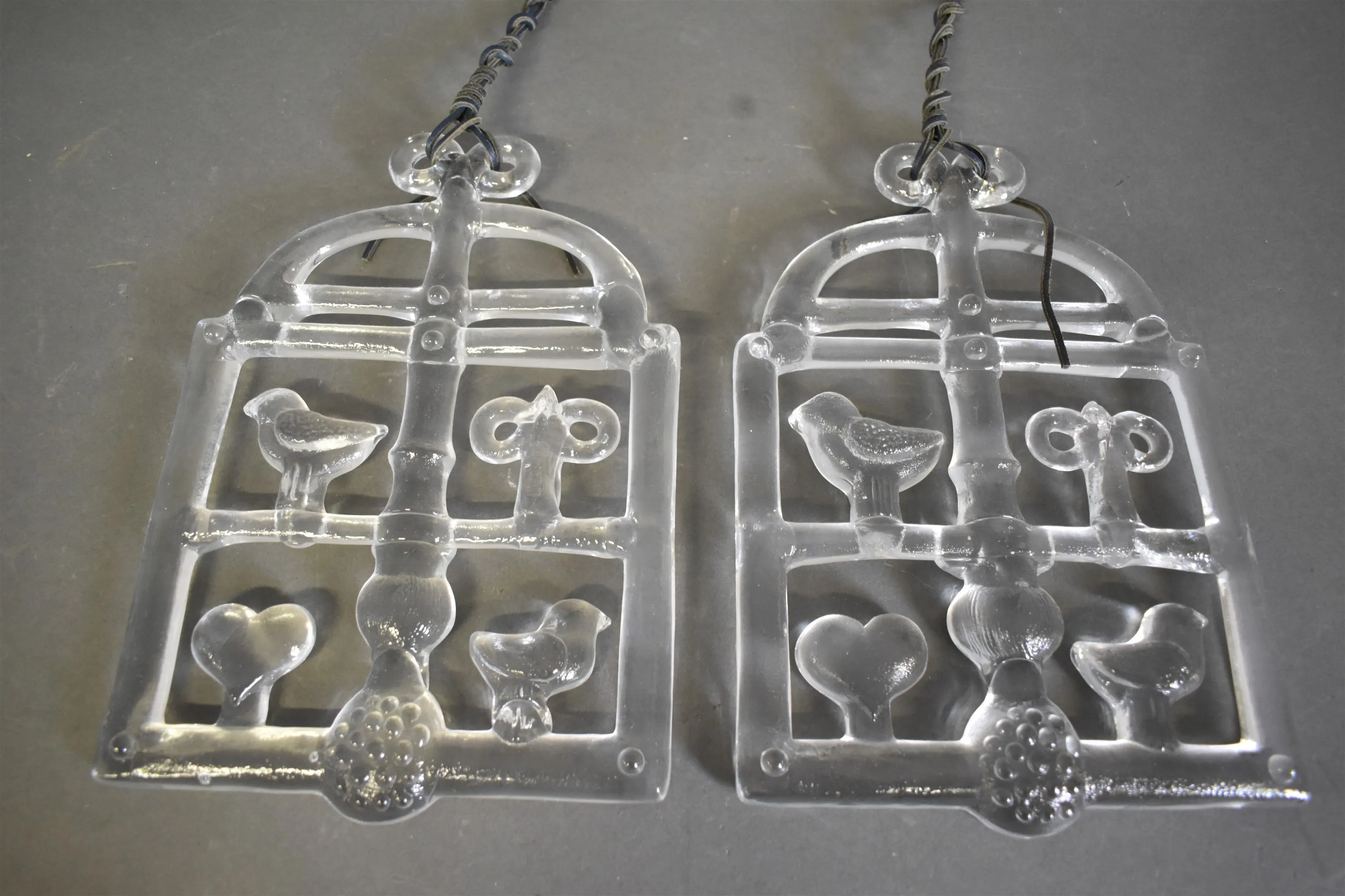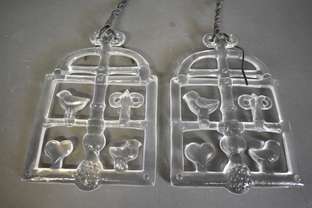 16497. Fönsterdekorationer 2 st Bertil Vallien, glas, höjd 32 cm