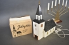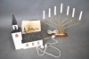 6346. Fönsterljusstake & julkyrka med speldosa, retro, högsta 44 cm