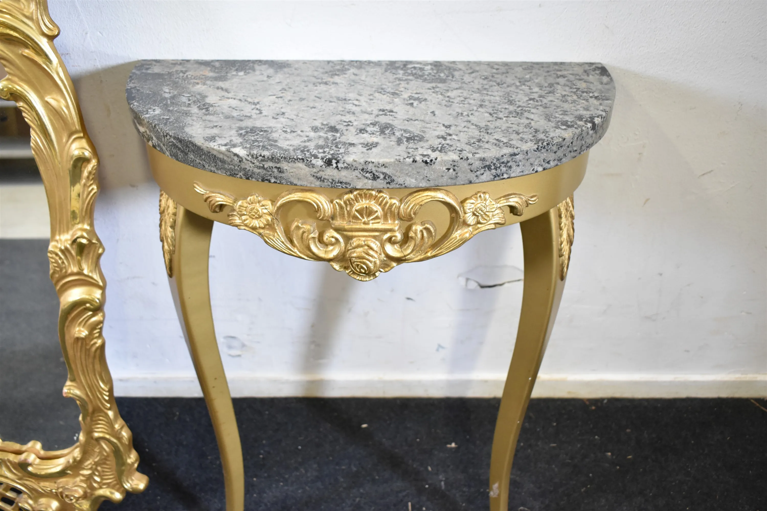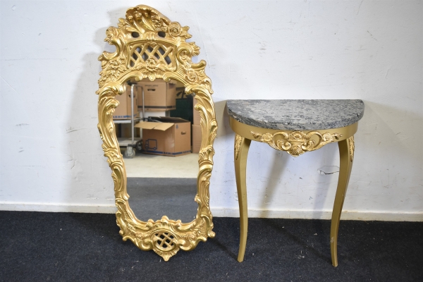 11940. Förgylld spegel och avlastningsbord med marmorskiva, mått på spegel 105x45 cm