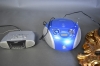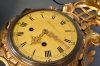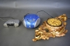 7661. Förgyllt väggur, klockradio och stereo Grundig, längsta mått 61 cm