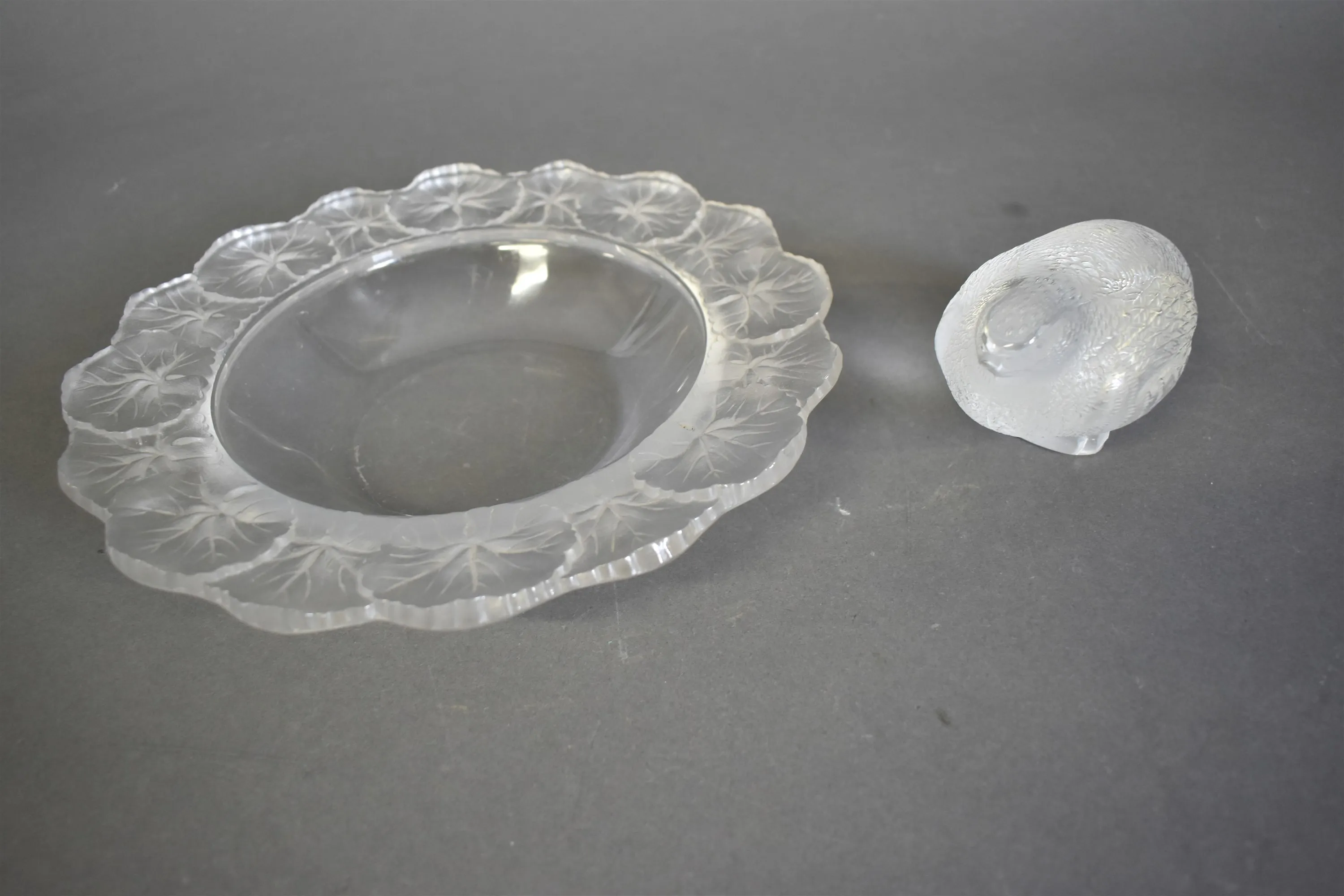 15573. Fat & fågel, Lalique, fågeln har naggad näbb, diameter på fat 27 cm