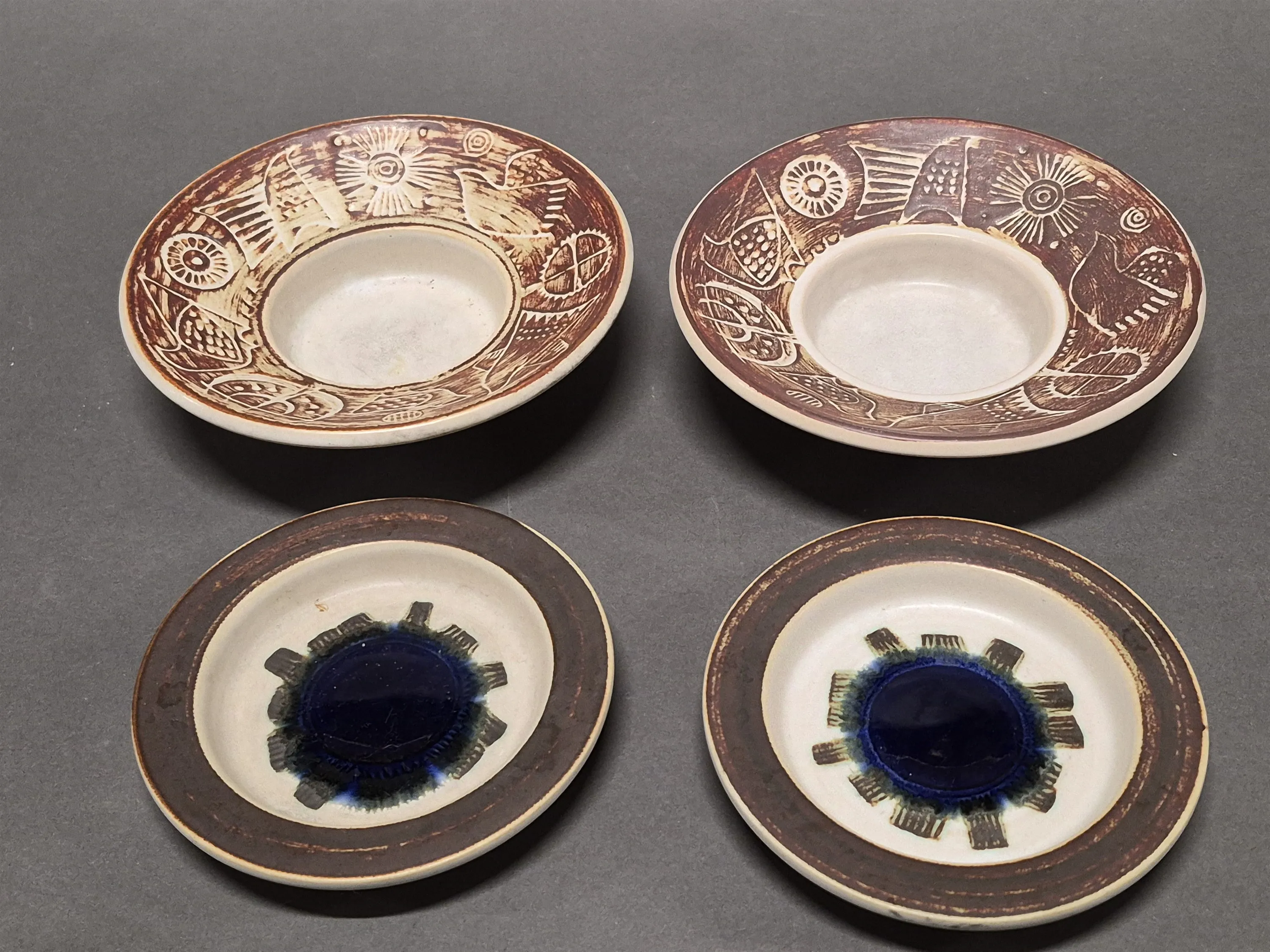 17186. Fat 2 + 2 st Olle Alberius, Rörstrand Romanta & Aura, diameter 19 ,5 & 15 cm