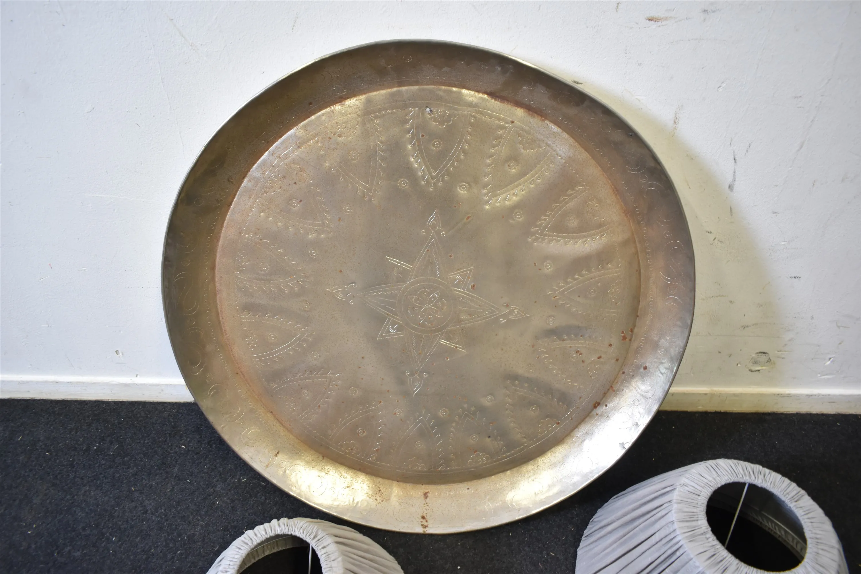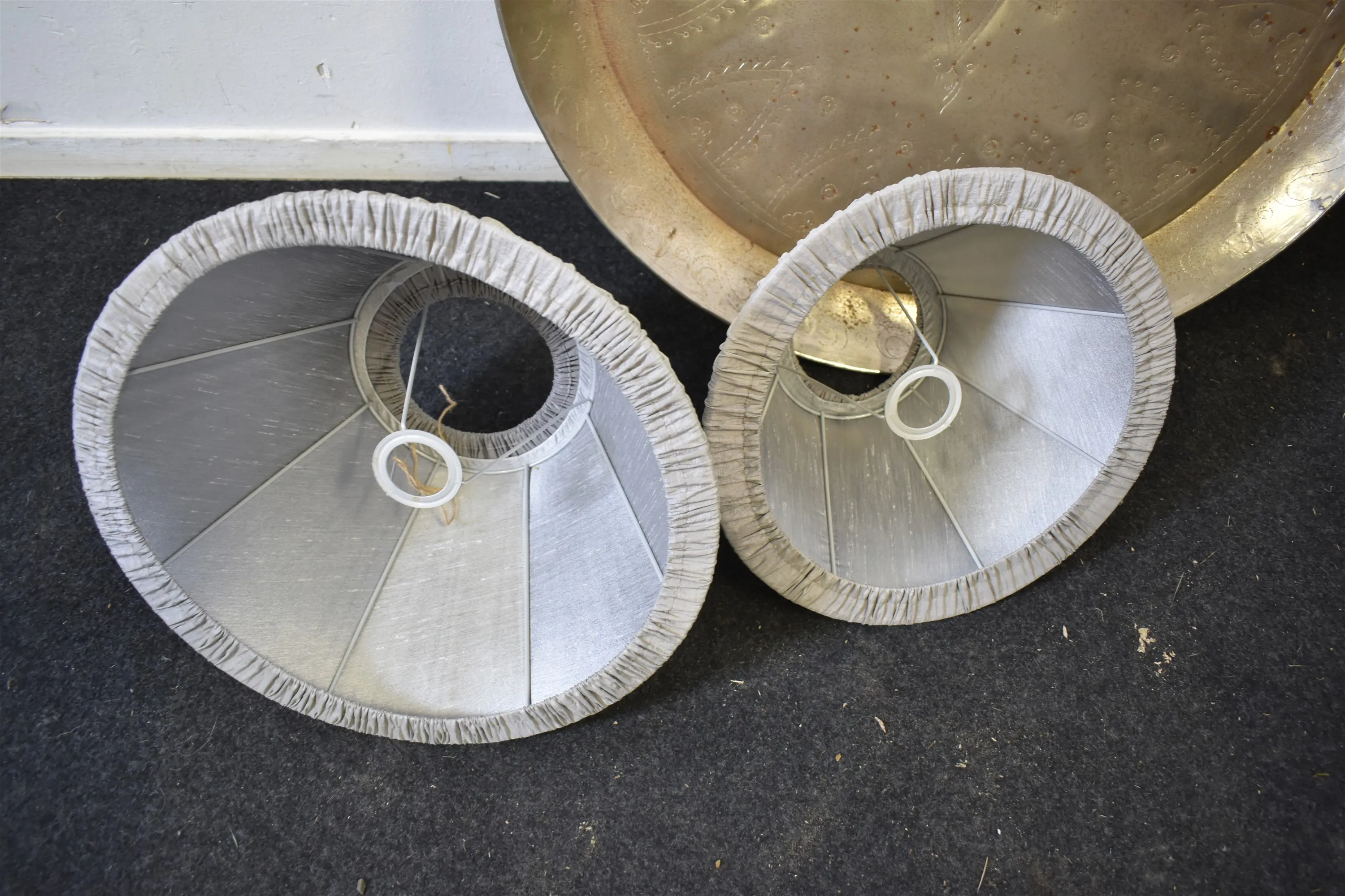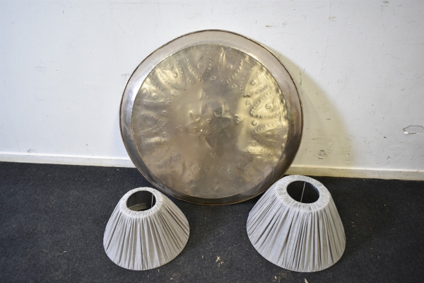 10839. Fat metall & 2 lampskärmar diameter 80 cm