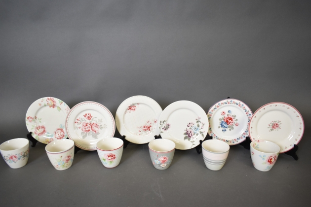 13372. Fat och koppar GreenGate 6+6 st, Danmark, diameter på fat 21 cm