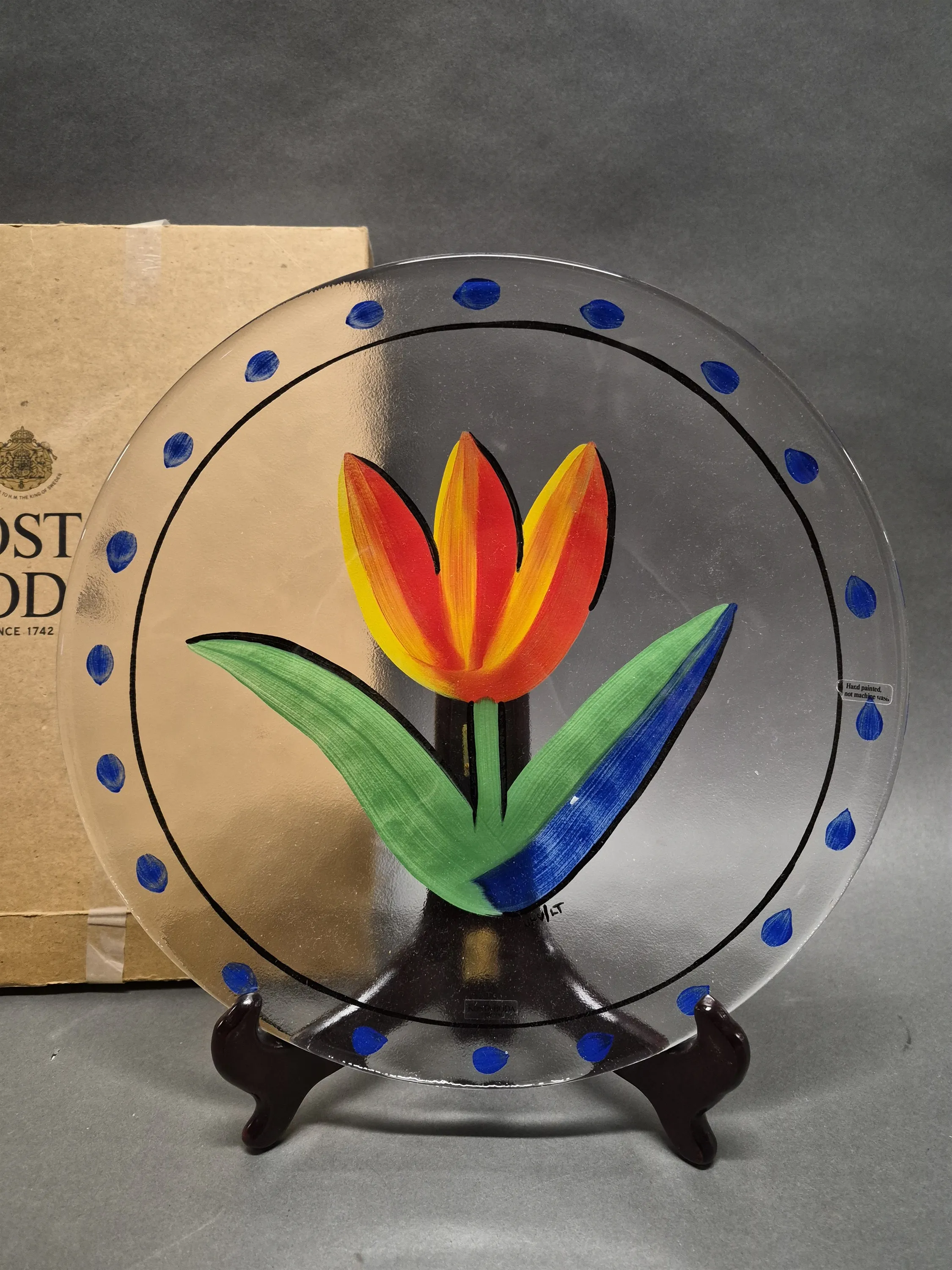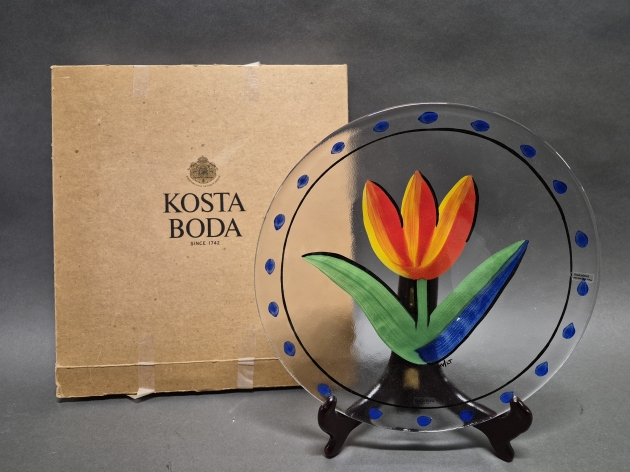 18612. Fat Ulrica Hydman Vallien Kosta Boda, tulpandekor, glas, diameter 32 cm
