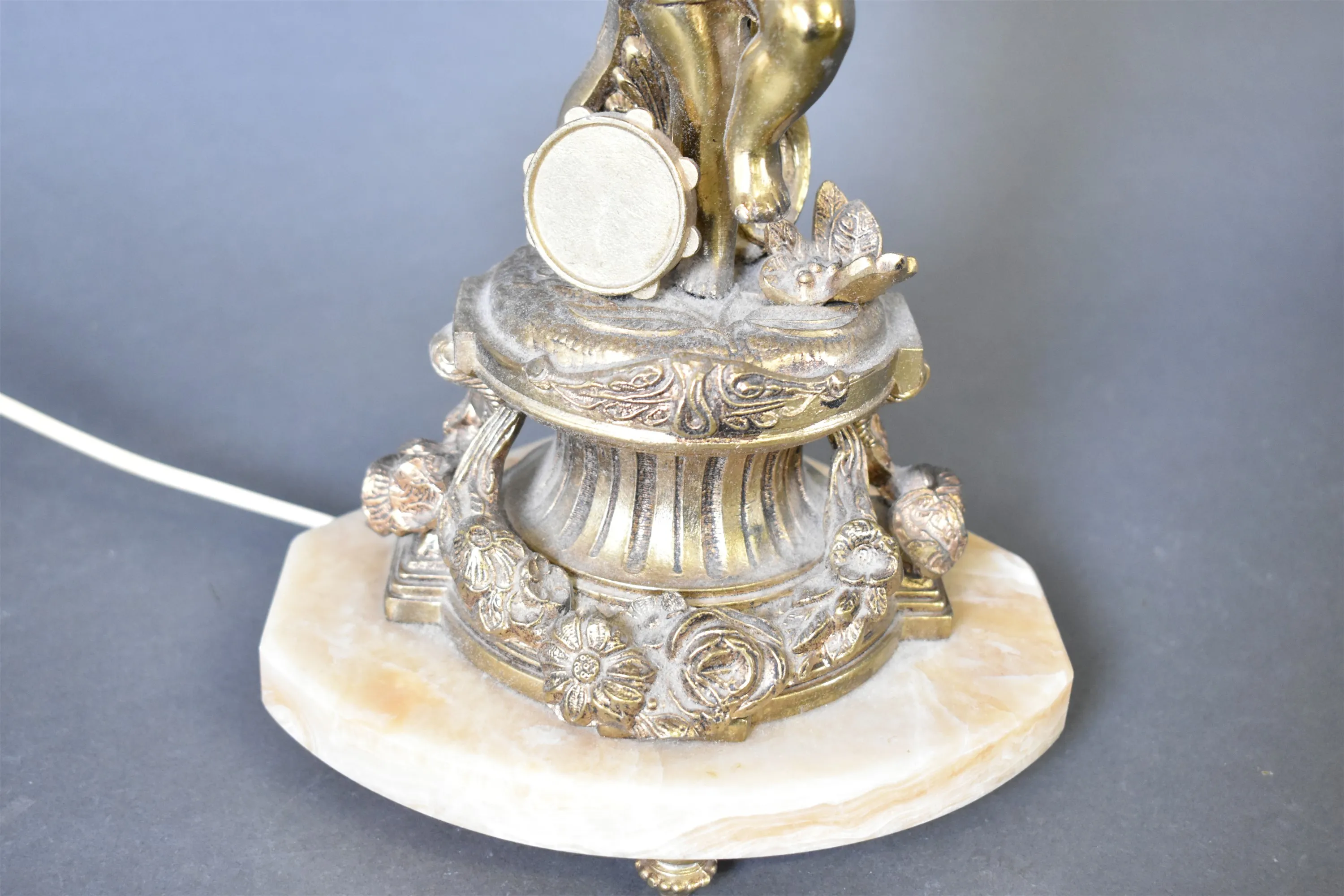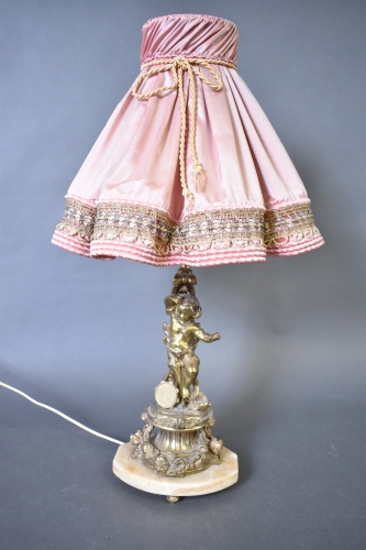 8297. Figurbordslampa mässing och marmor, höjd 72 cm