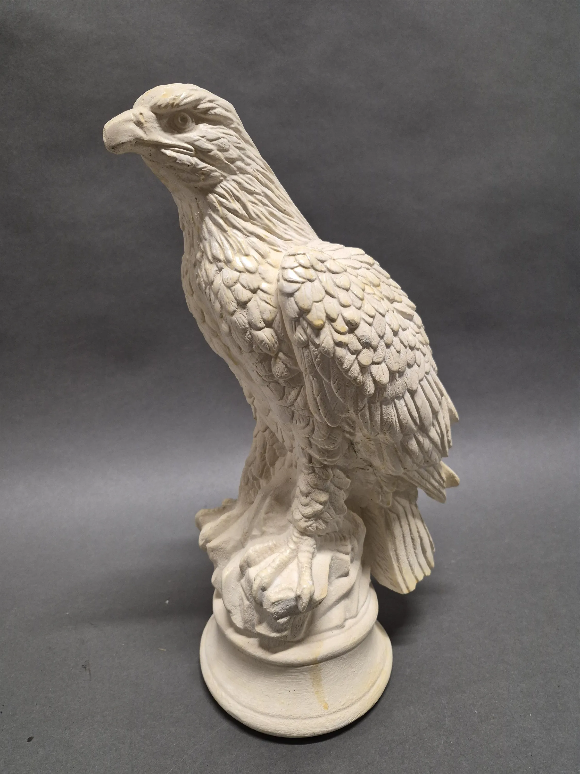 18413. Figurin rovfågel, gips, något skav finns, höjd 39 cm